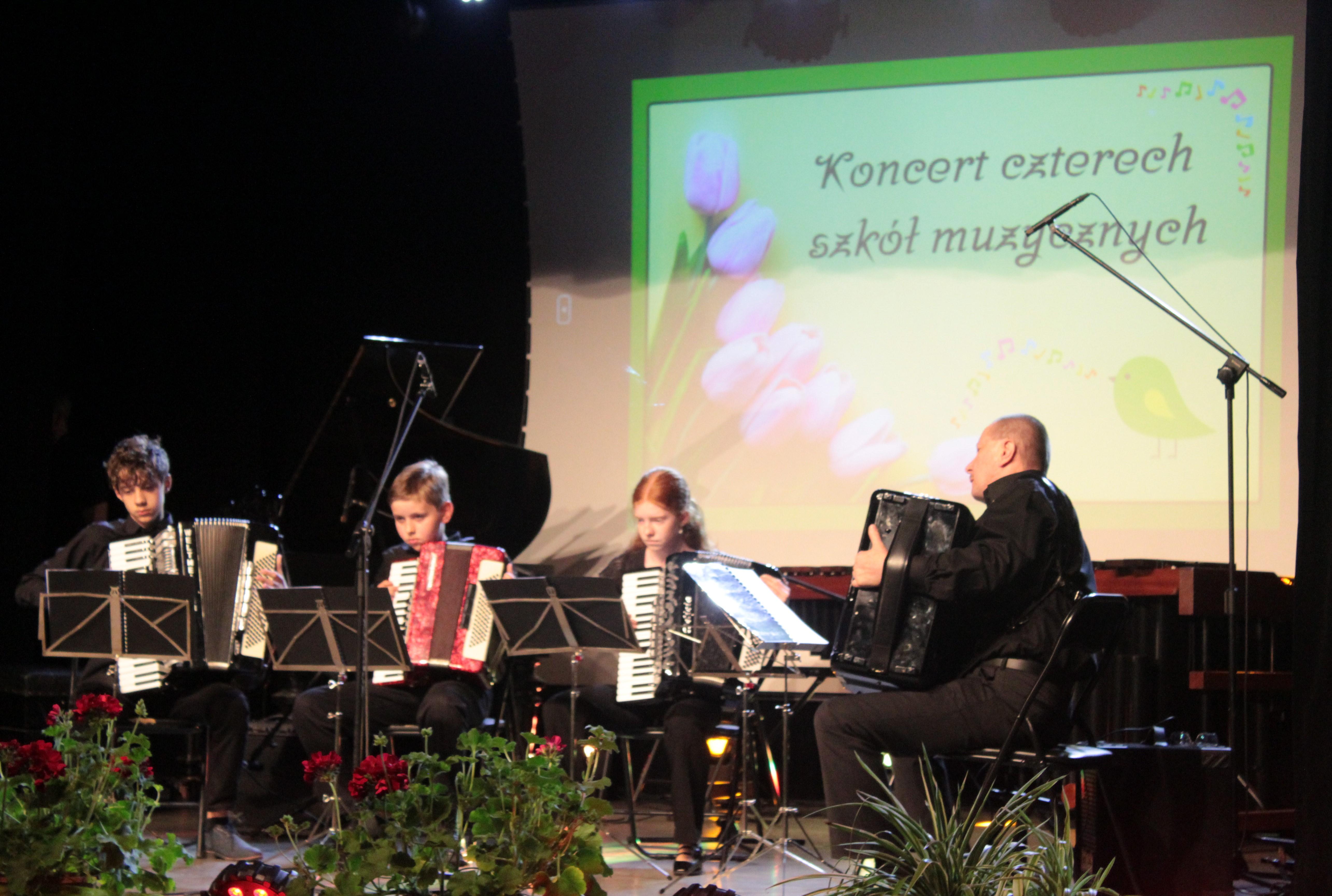 Kwartet Akordeonowy w składzie: Jakub Gomuła, Jagoda Matulla, Franciszek Baran, naucz. Tomasz Miler