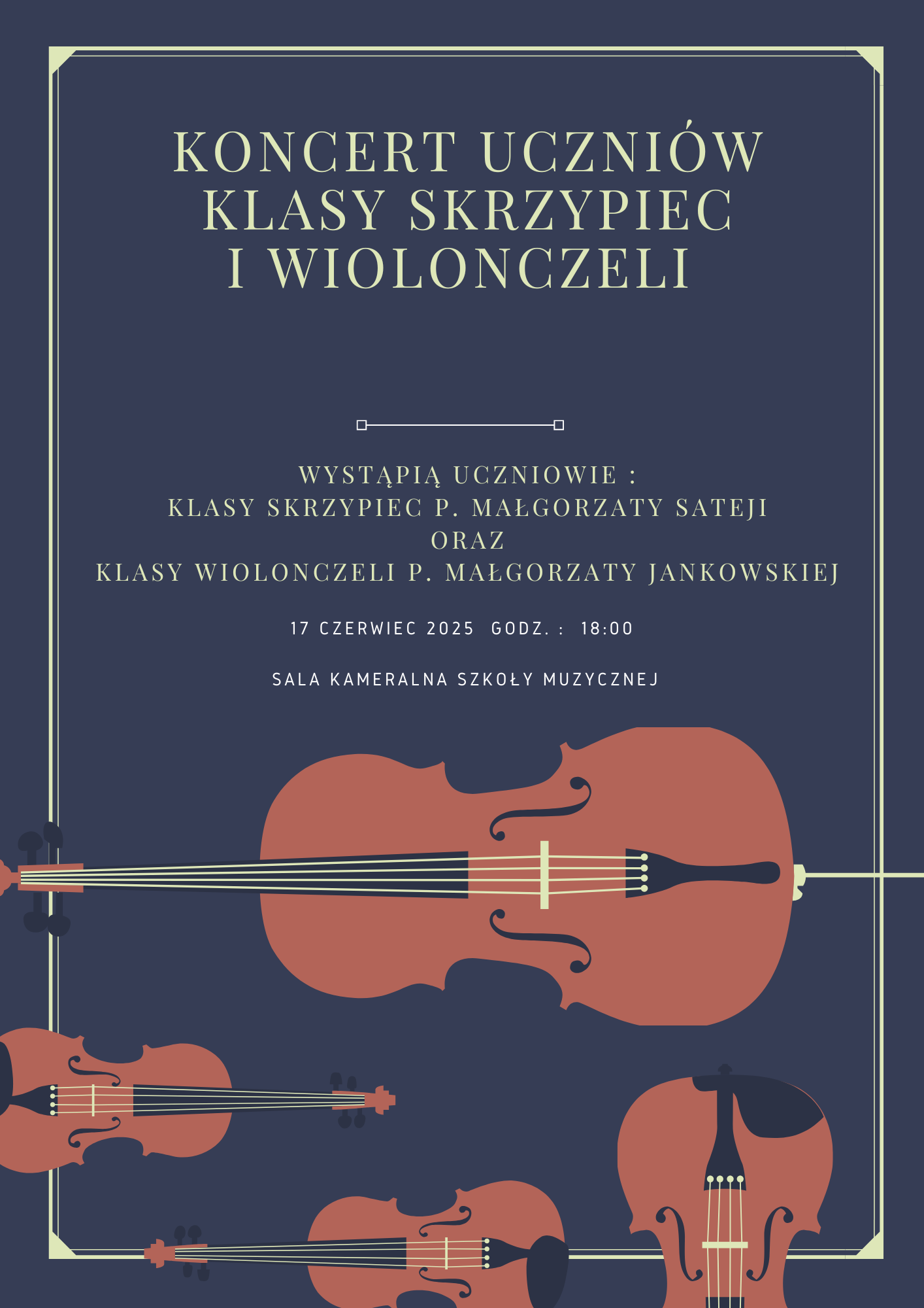 Dnia 17.06.2025 w sali kameralnej naszej szkoły odbył się koncert uczniów klasy wiolonczeli p. M.Jankowskiej i klasy skrzypiec p. M.Sateji który stanowił podsumowanie całorocznej pracy.