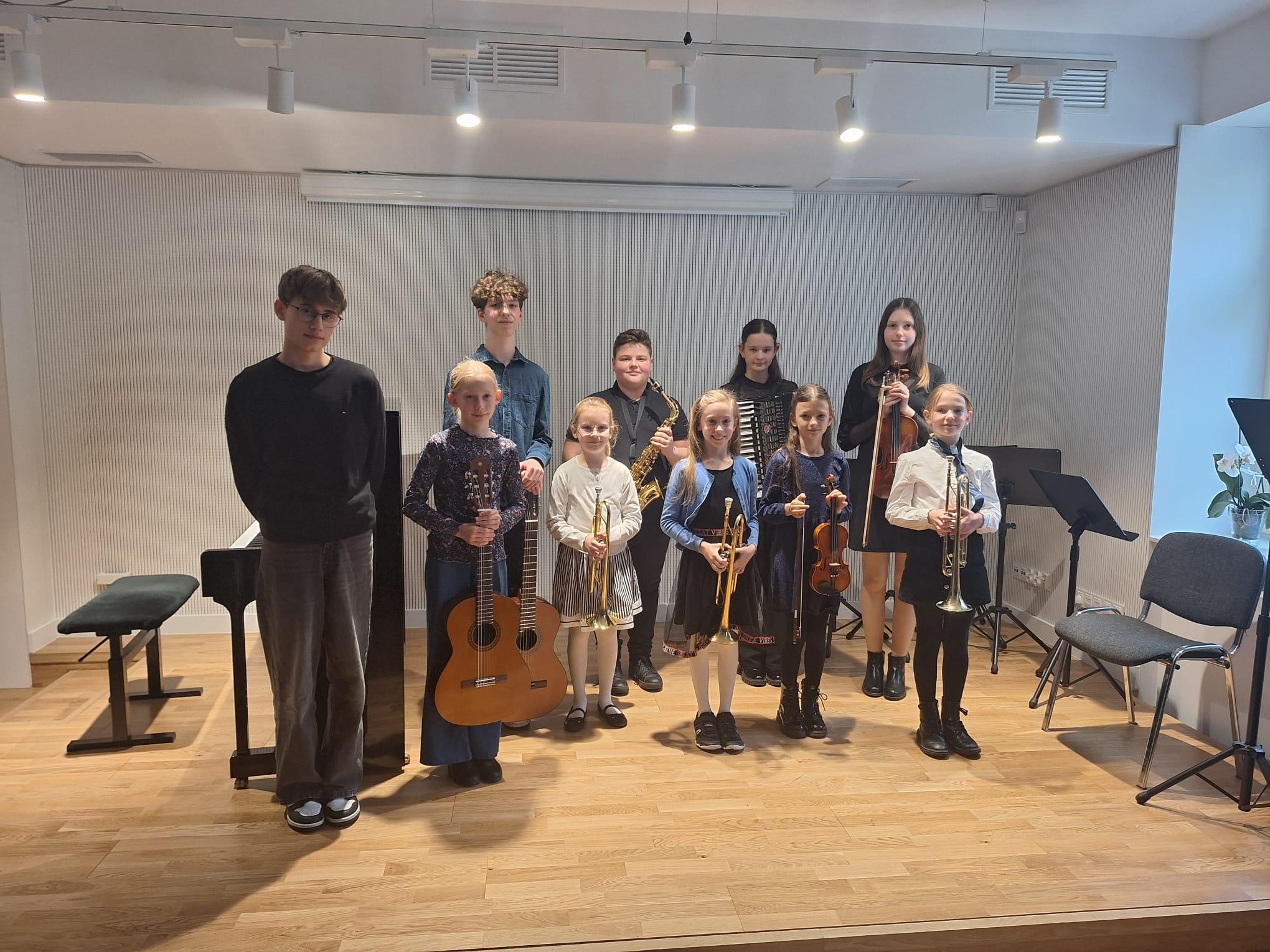 Podczas koncertu wystąpili: skrzypaczki Gabriela Maciejewicz i Michalina Wachowiak z klasy pani Sylwii Kaczmarek Subera, Ewa Poznańska z klasy gitary pana Stanisława Janaszaka, Sebastian Adamczak z klasy gitary pana Wiktora Wilgockiego, Nadia Jankun z klasy akordeonu pana Tomasza Milera, Julian Błaszczyk z klasy fortepianu pani Martyny Koberling, Marcel Brambor z klasy saksofonu pana Rafała Kubale oraz trębaczki z klasy pana Sławomira Framskiego: Konstancja Jarnut, Olga Framska i Wiktoria Czachor. Dęciakom towarzyszył przy pianinie pan Mateusz Kowalski.