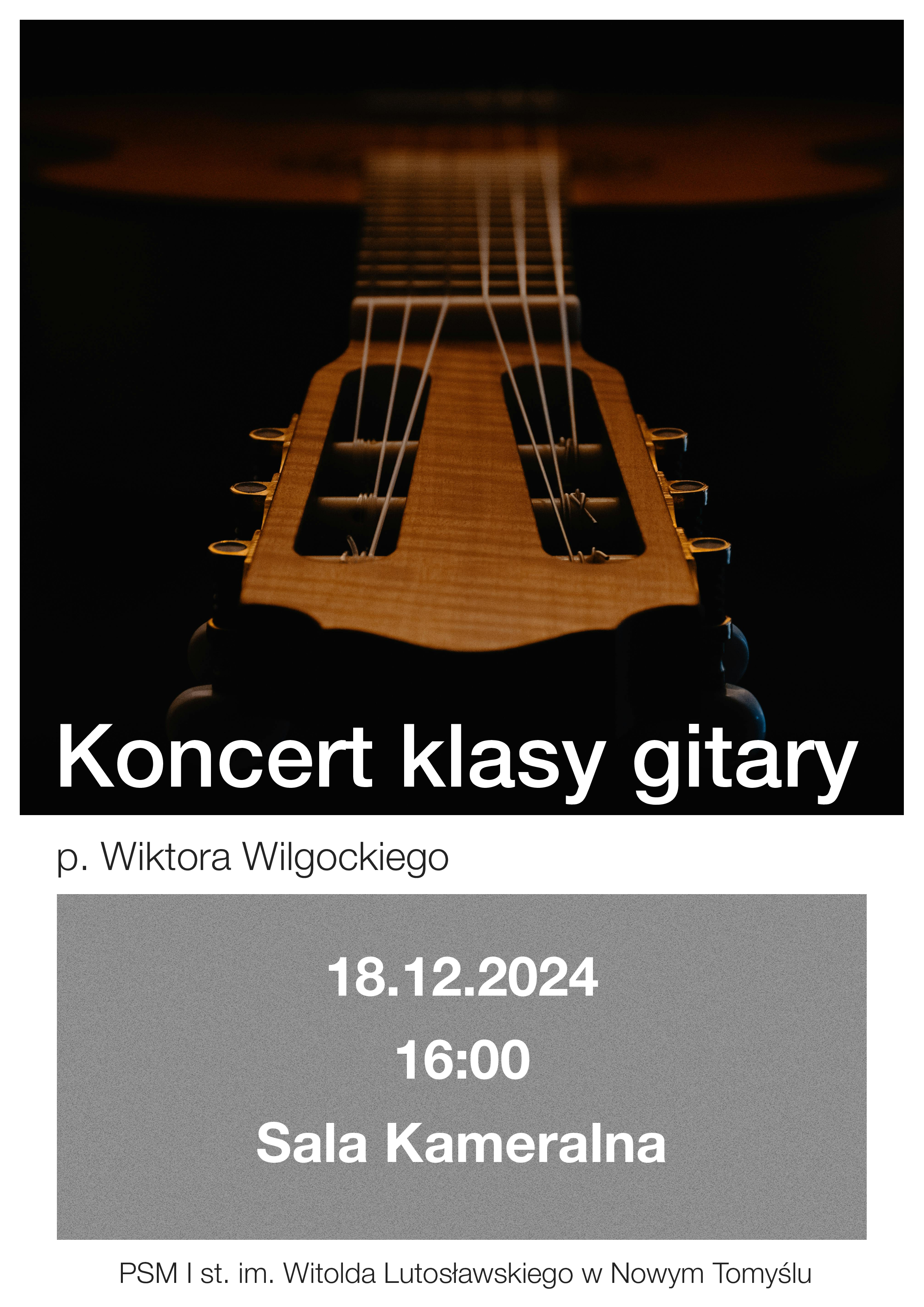 18 grudnia, tuż przed przerwą świąteczną odbył się koncert klasy gitary p. Wiktora Wilgockiego. Uczniowie zaprezentowali utwory nad którymi pracowali w ostatnim czasie.