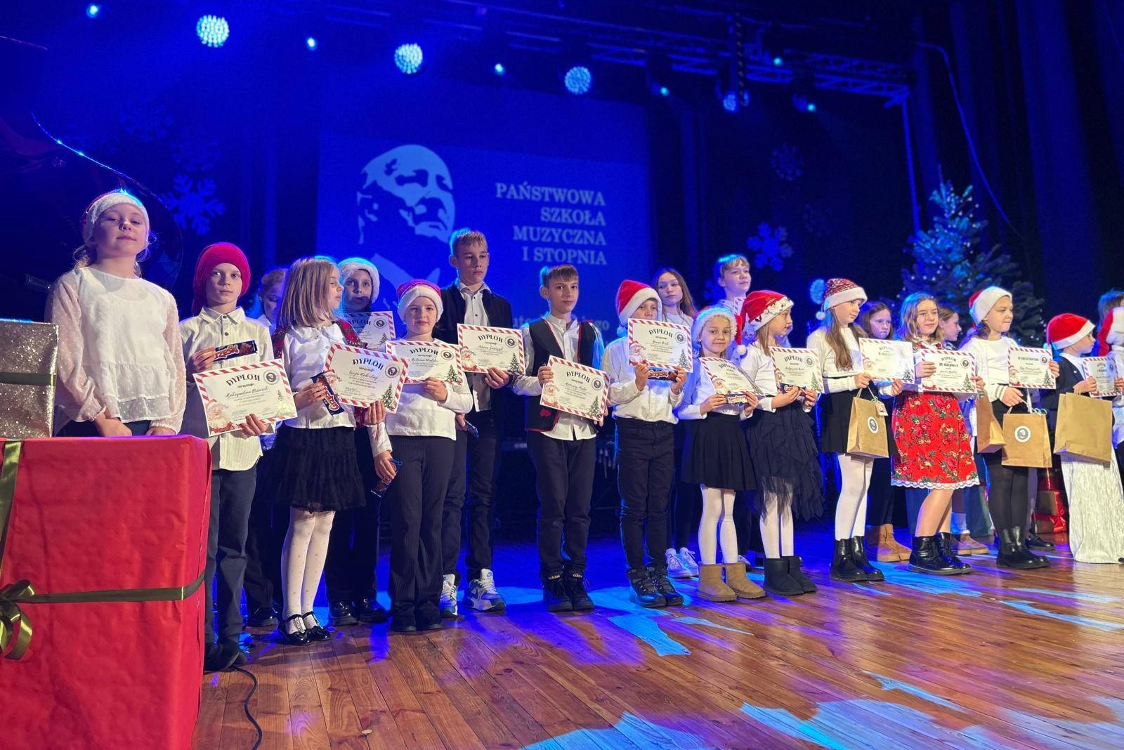 19 grudnia w Sali Widowiskowej Nowotomyskiego Ośrodka Kultury uczniowie i nauczyciele naszej szkoły wykonali piękny Koncert Bożonarodzeniowy. Podczas koncertu Przedstawiciele Rady Rodziców wręczyli dzieciom dyplomy i nagrody za udział w szkolnym konkursie Muzyczna Bombka (prace plastyczne znalazły się na szkolnej choince). Pod koniec koncertu do uczniów przyszedł św. Mikołaj by obdarować dzieci mocą swojej radości i mnóstwem słodkości.