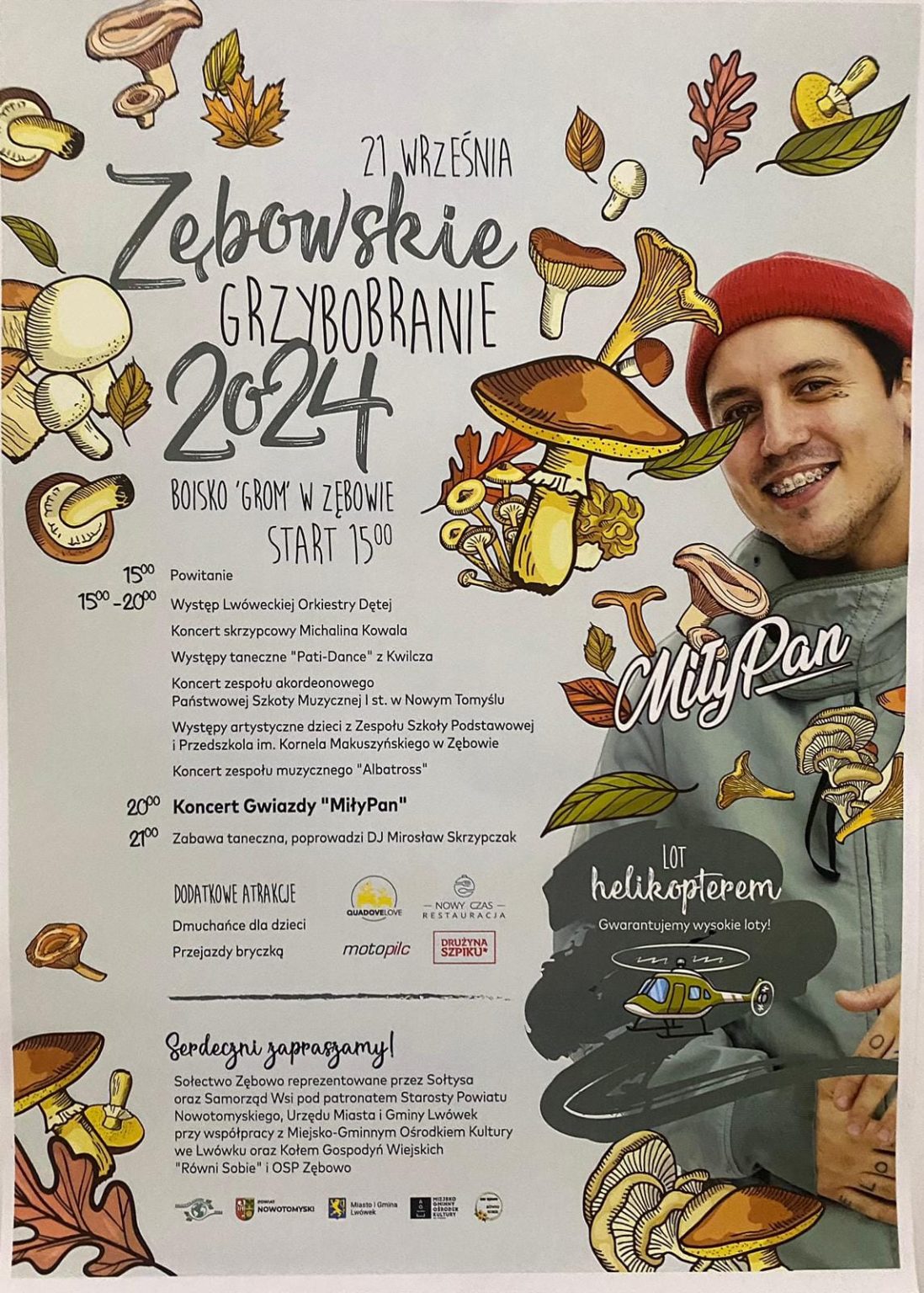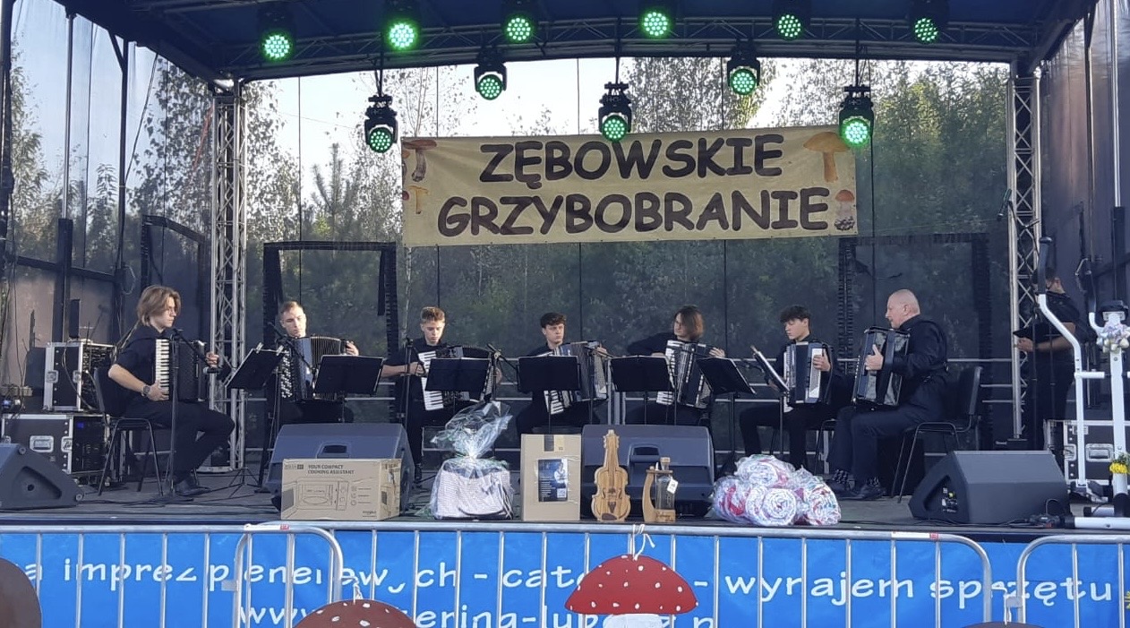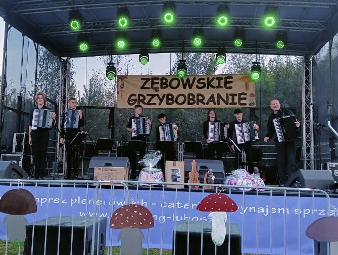 W sobotę 21 września Zespół Akordeonowy prowadzony przez Pana Tomasza Milera wystąpił z programem artystycznym na Zębowskim Grzybobraniu 2024. Organizatorem imprezy było Sołectwo Zębowa pod patronatem Starosty Nowotomyskiego oraz Urządu Miasta i Gminy Lwówek.