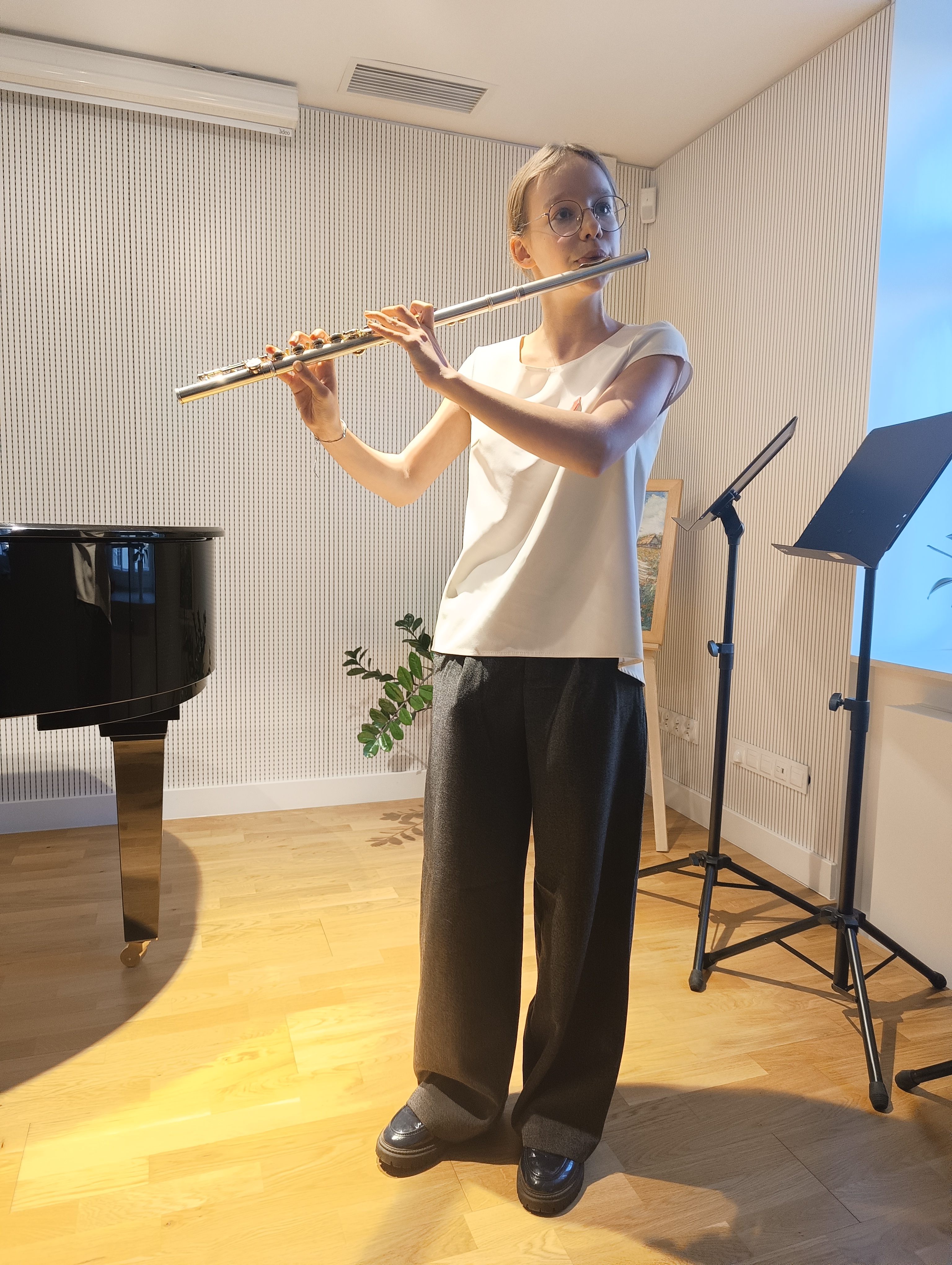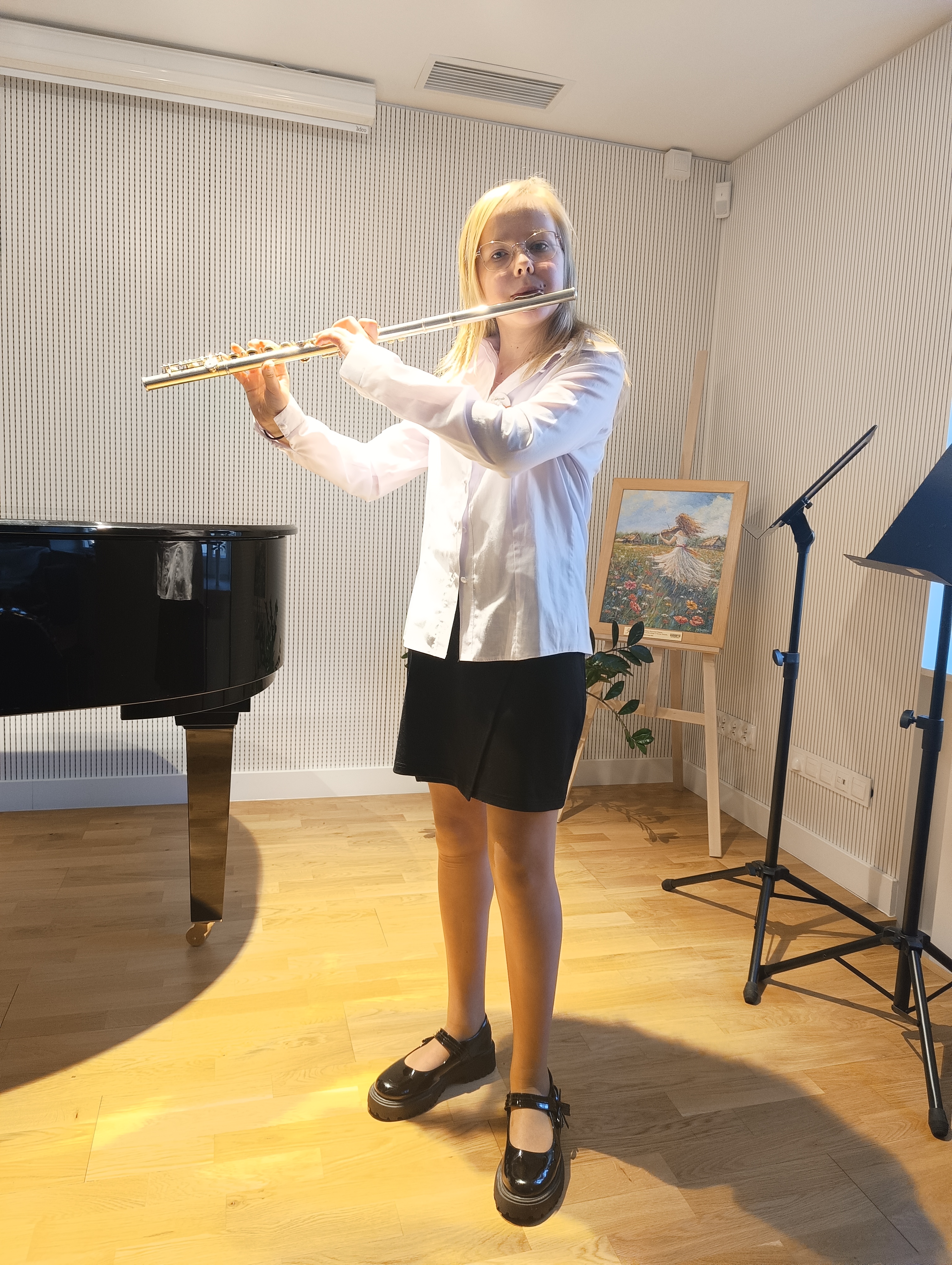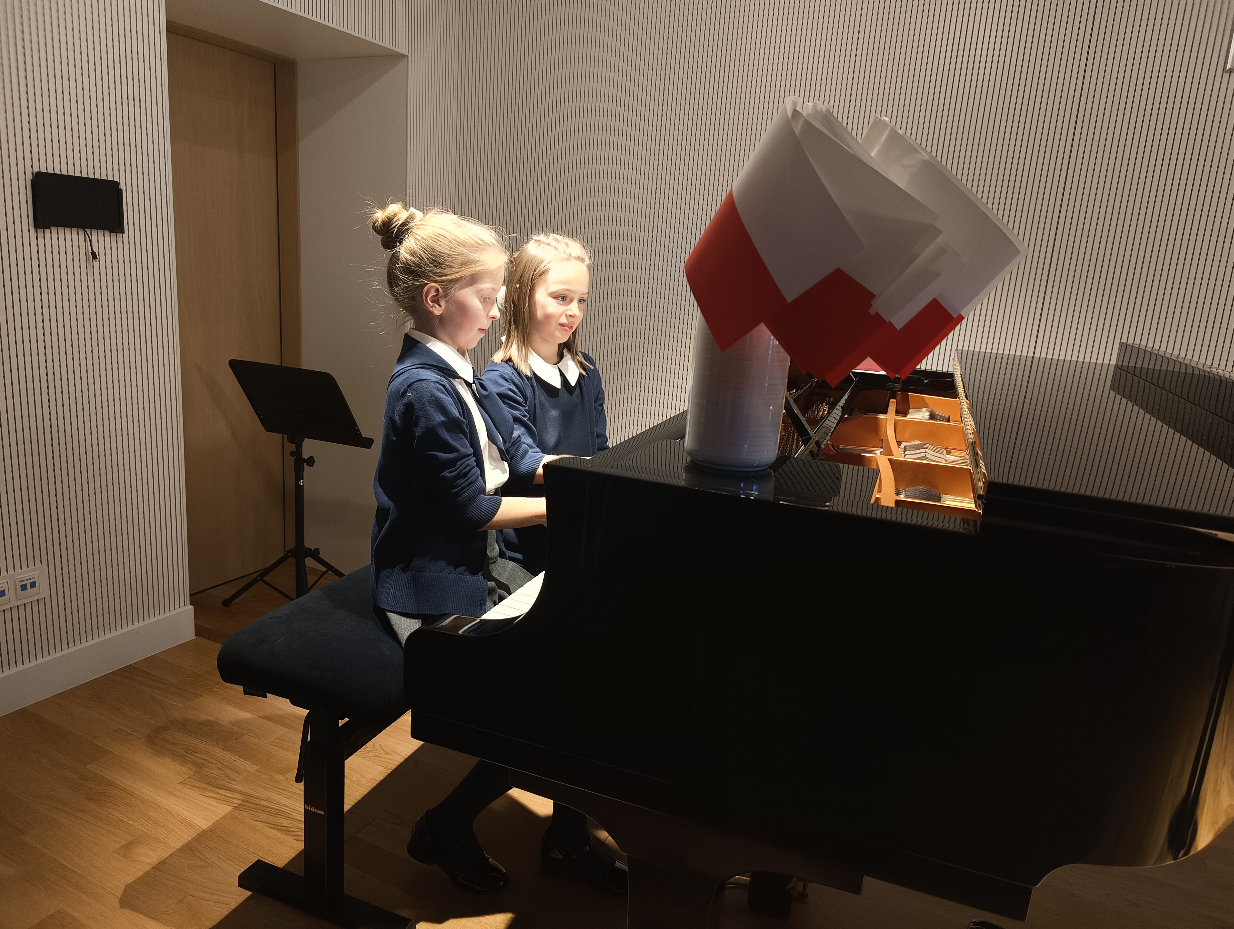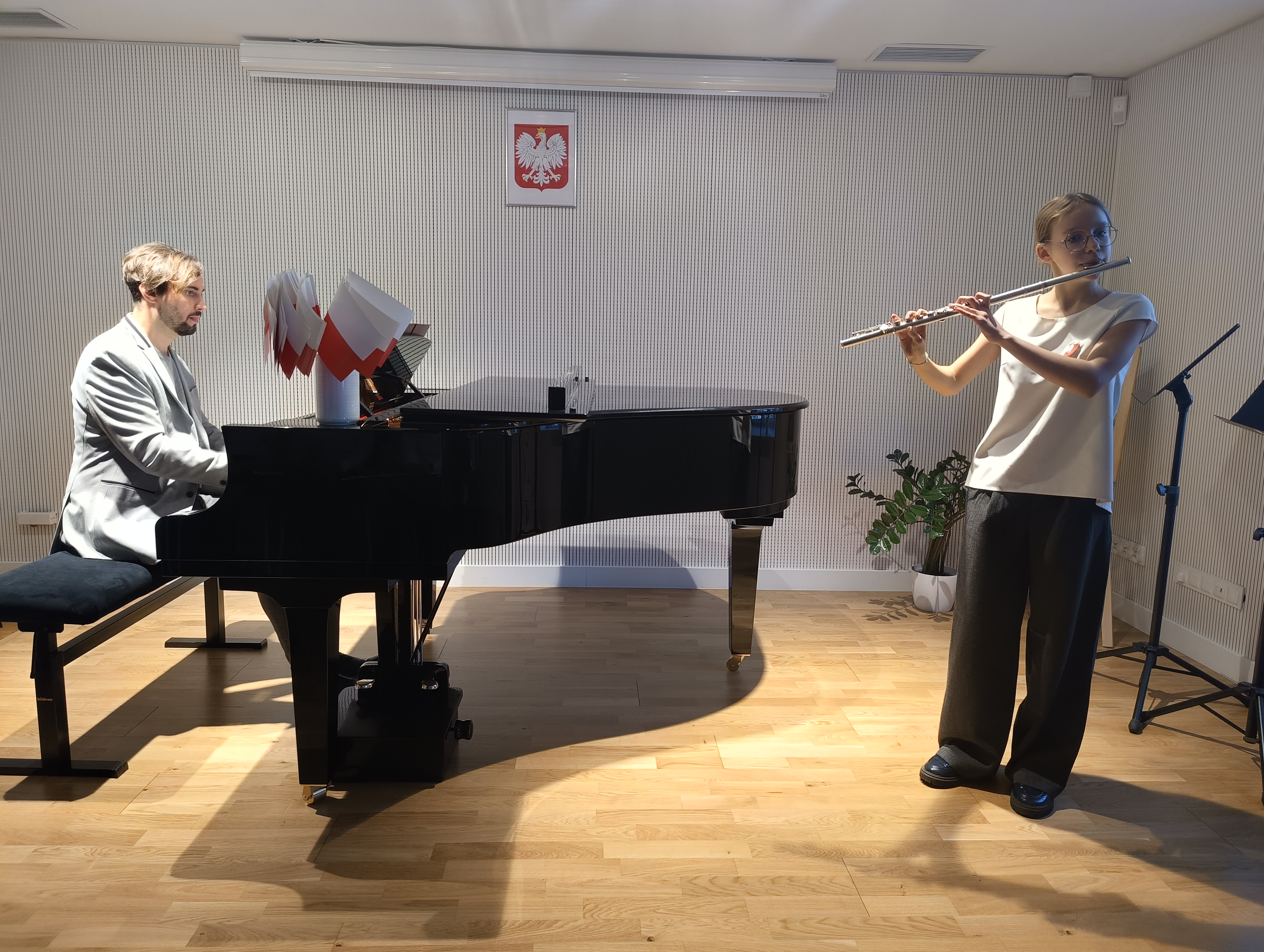 21 listopada odbył się w naszej szkole wyjątkowy koncert pt. "Flety patriotycznie". Nasze Flecistki, z klasy p. Anny Wojtowicz, zaprezentowały utwory patriotyczne, m.in. "O mój rozmarynie", "Przybyli Ułani", "Czerwone Maki na Monte Casino". Flecistkom, przy fortepianie, towarzyszyli: p. Julia Wizjan, p. Mateusz Wizjan, a także młodsze koleżanki z klasy p. Julii Wizjan - Maria Ford i Joanna Poschwald.