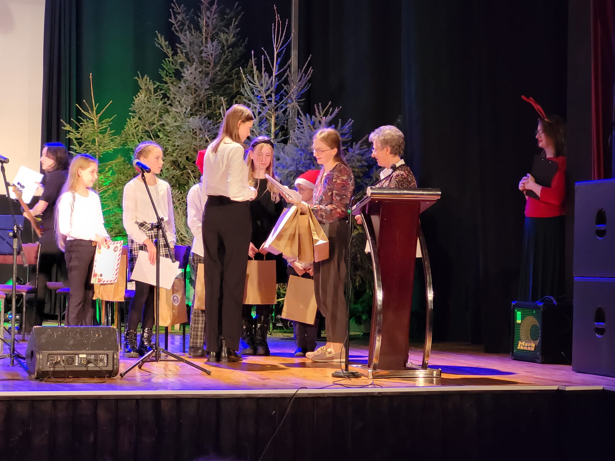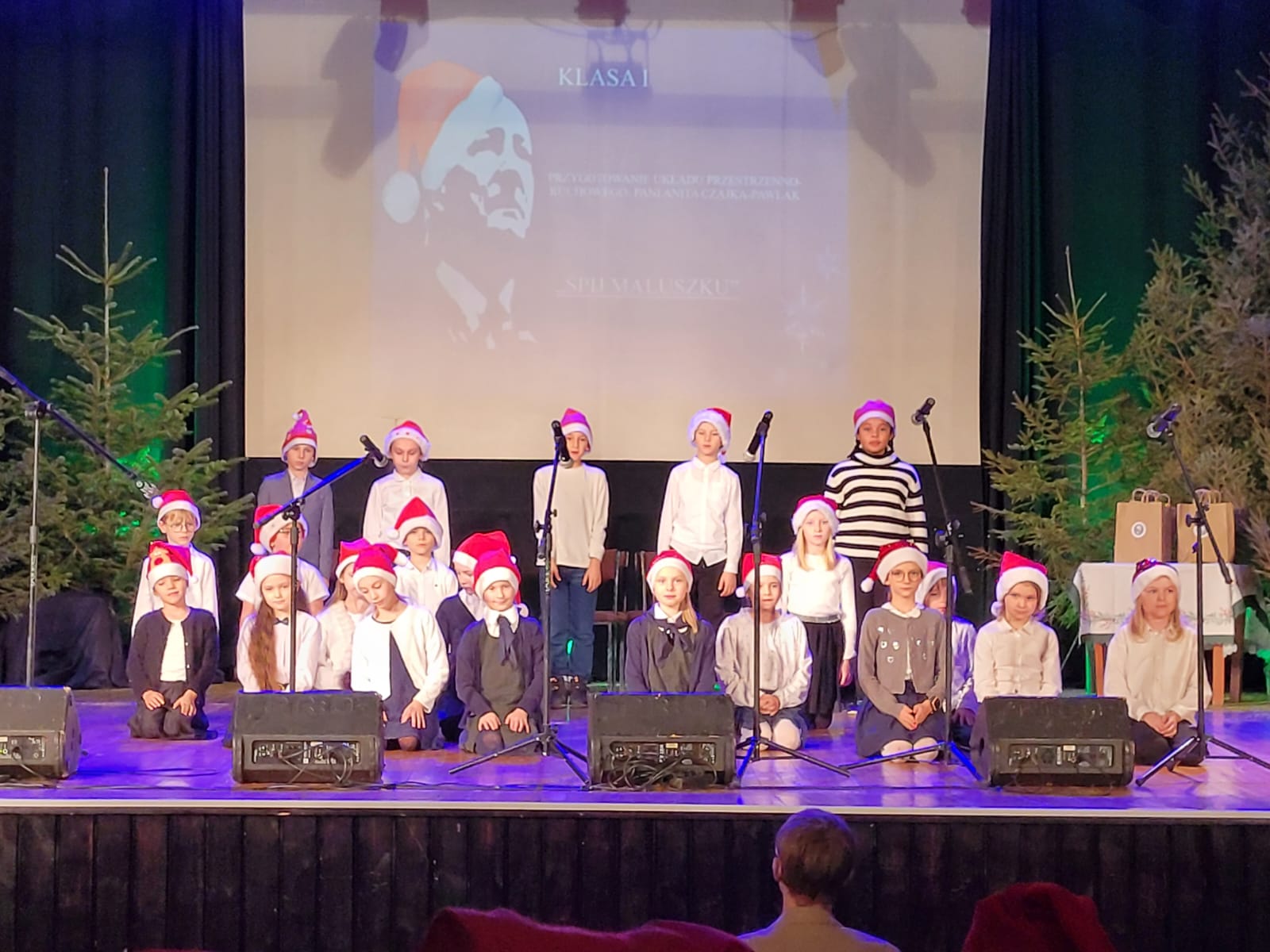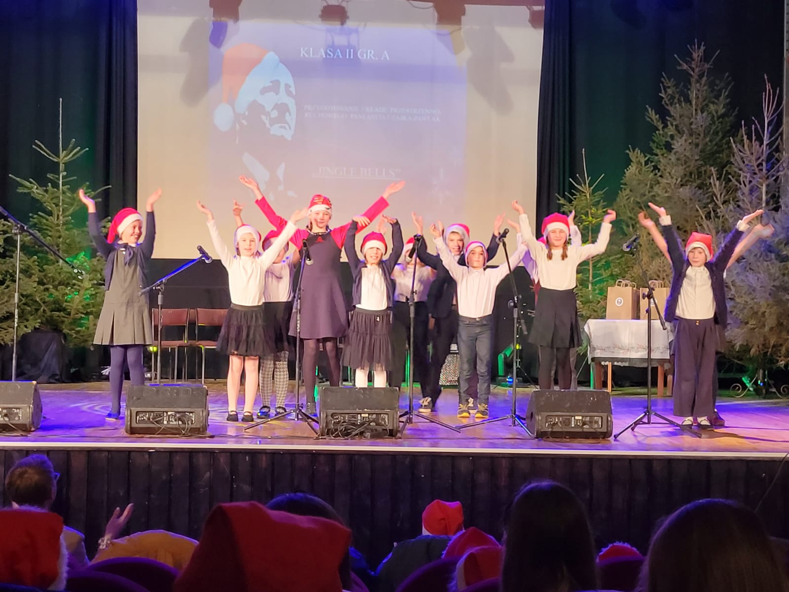Po zakończonym koncercie Rada Rodziców przygotowała dla dzieci niespodziankę - przy wyjściu na przybyłych czekał Święty Mikołaj z torbą pełną cukierków.
