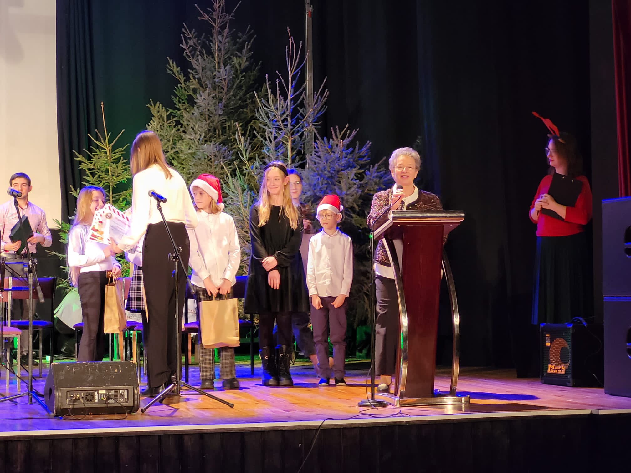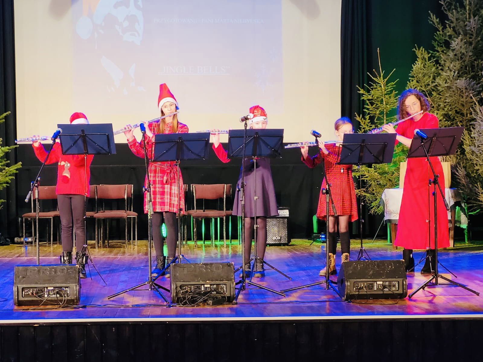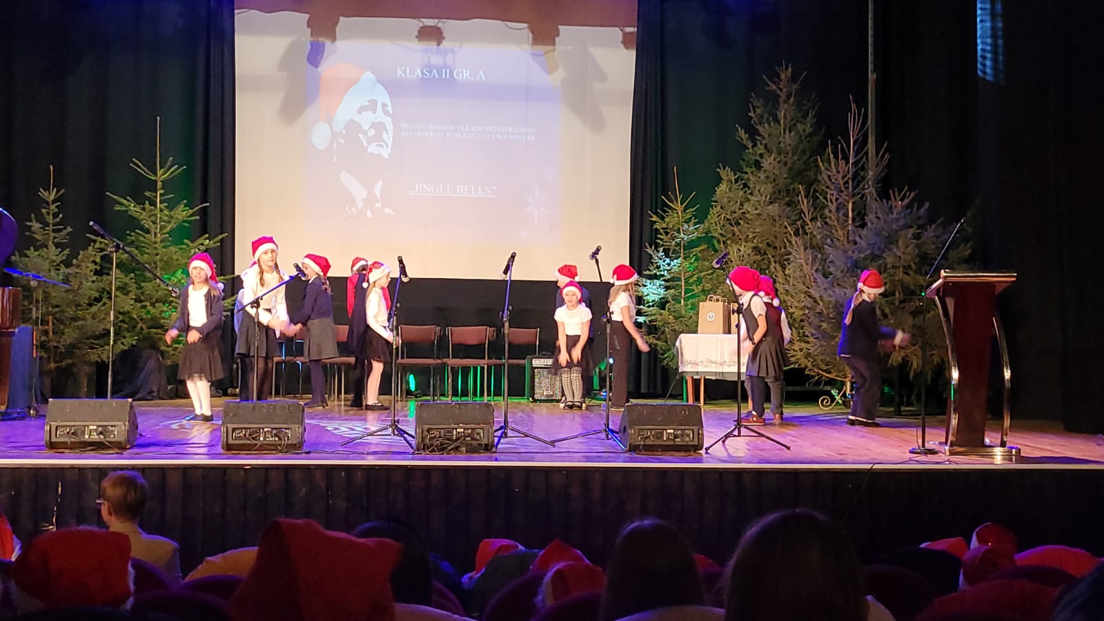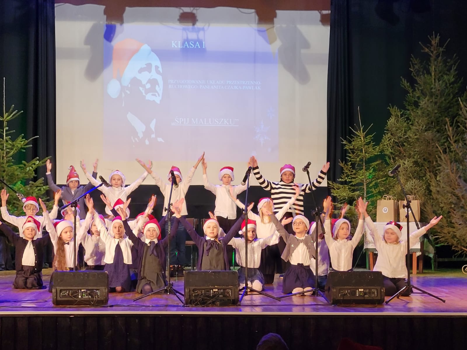 Po zakończonym koncercie Rada Rodziców przygotowała dla dzieci niespodziankę - przy wyjściu na przybyłych czekał Święty Mikołaj z torbą pełną cukierków.