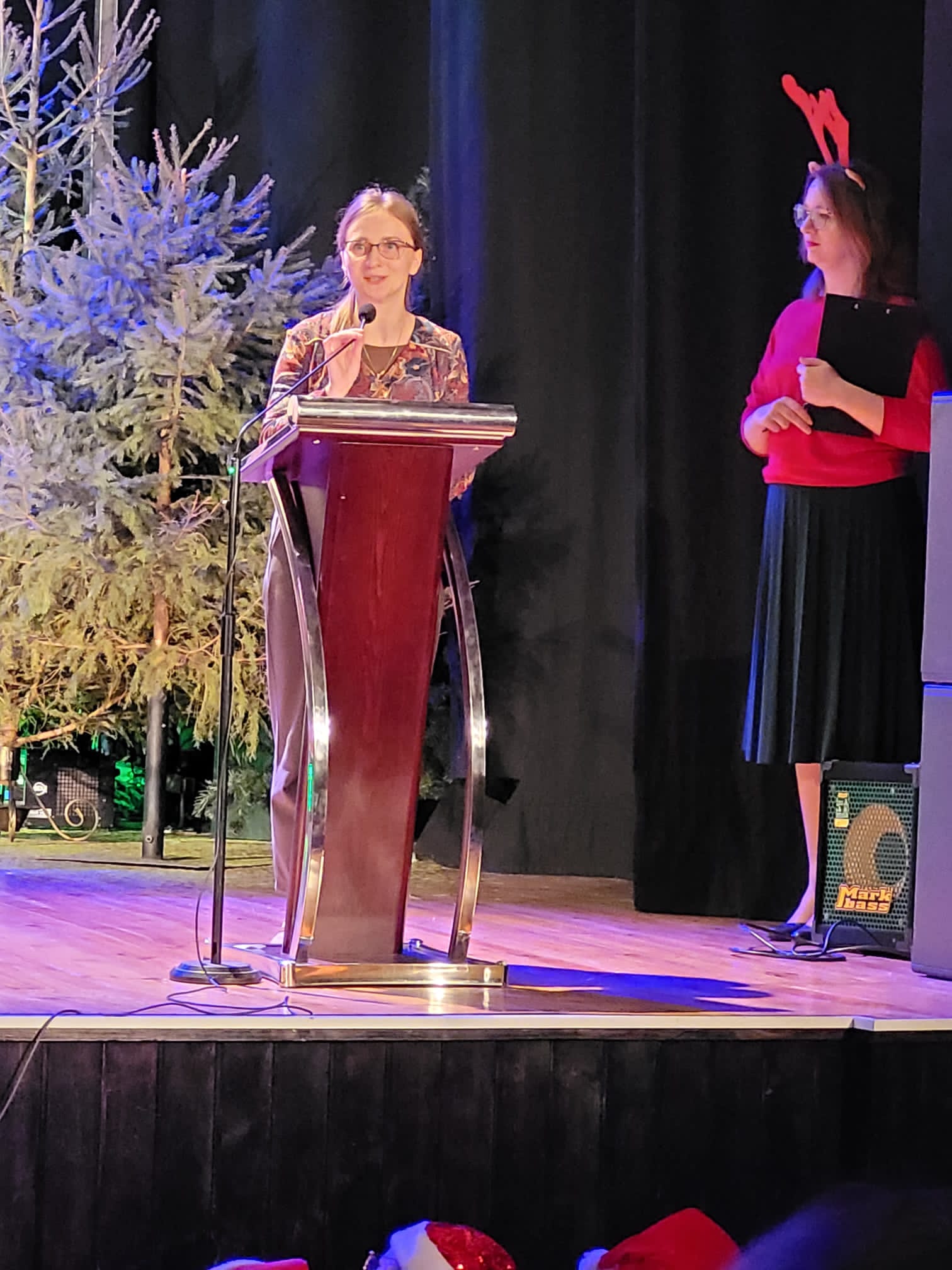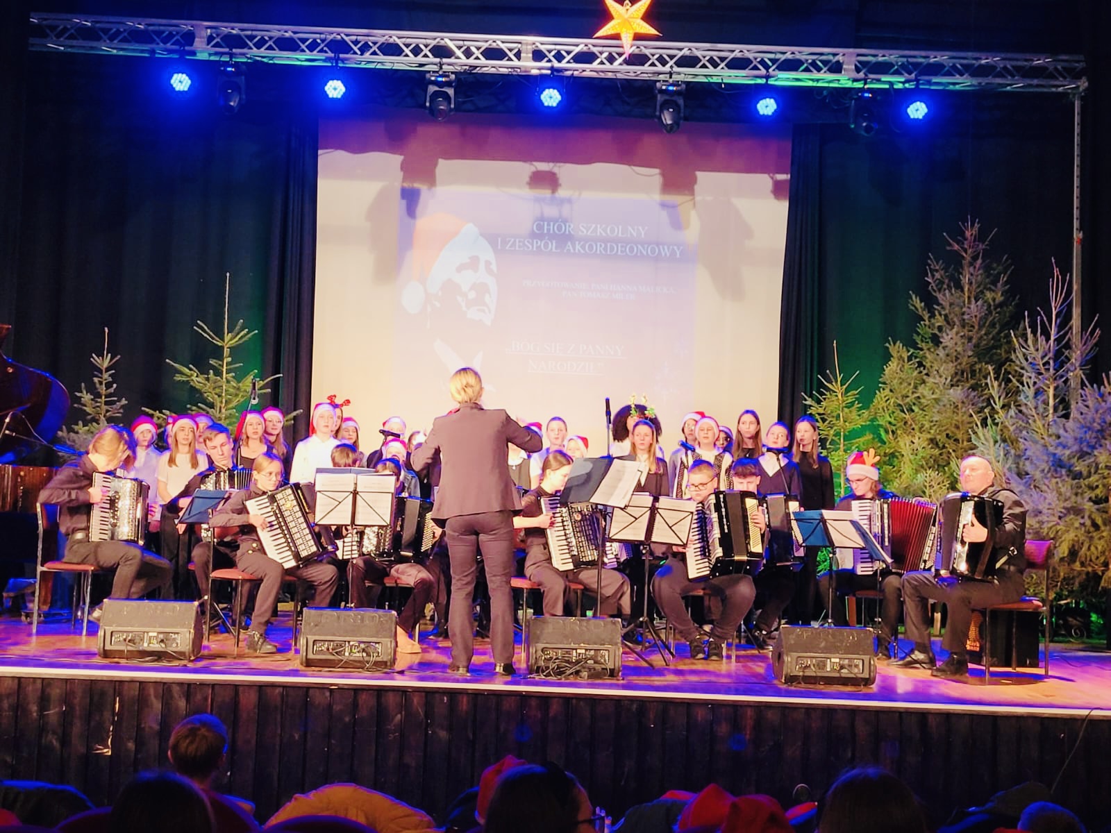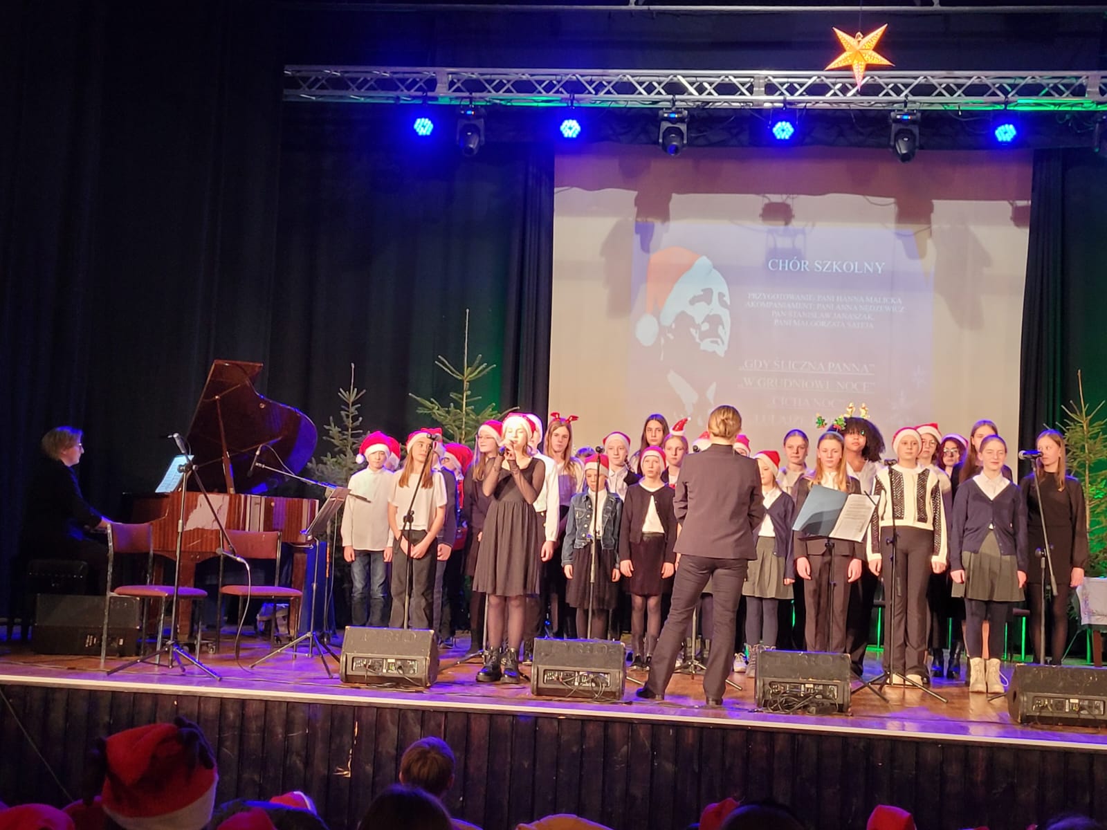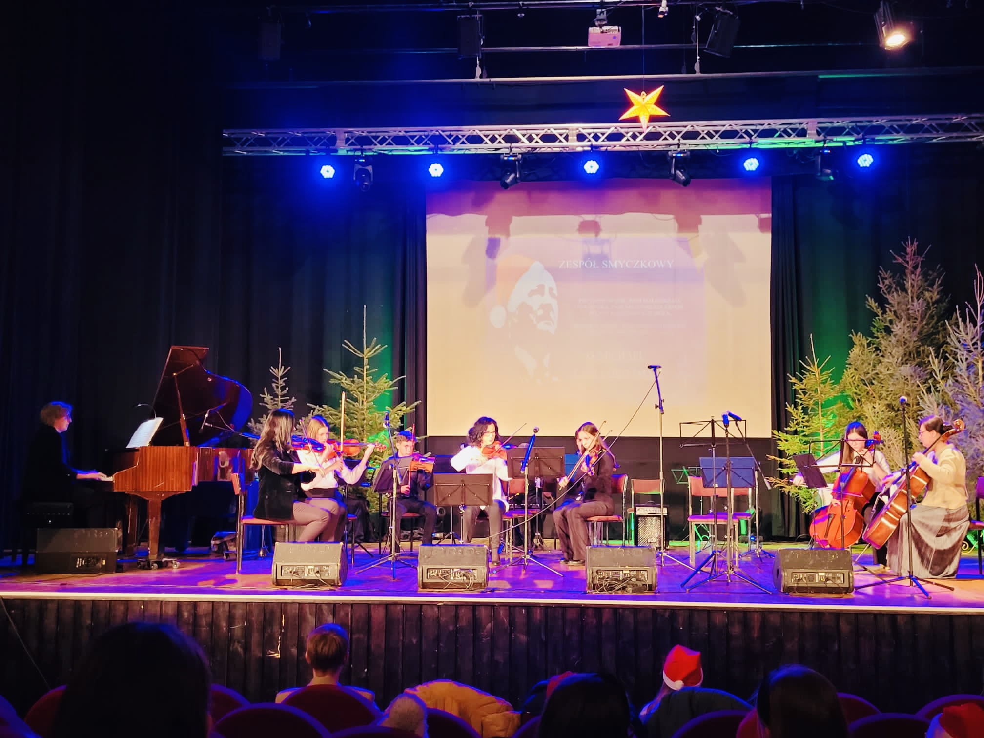 W przedświąteczny czwartek 21 grudnia 2023 roku w Nowotomyskim Domu Kultury odbył się piękny Koncert Bożonarodzeniowy w wykonaniu uczniów i nauczycieli naszej szkoły. Piękne dźwięki kolęd wypełniły Salę Widowiskową, wprawiając wszystkich w radosny, świąteczny nastrój. Na scenie zaprezentowali się soliści, uczniowie klas I-III cyklu sześcioletniego, chór szkolny z różnorodnym towarzyszeniem oraz liczne zespoły instrumentalne. Podczas krótkiej przerwy, pani Danuta Ford - przewodnicząca Rady Rodziców, ogłosiła wyniki konkursu na ozdobę świąteczną "Muzyczna Choinka". Zgromadzona publiczność nagrodziła laureatów konkursu i wykonawców koncertu gromkimi oklaskami.