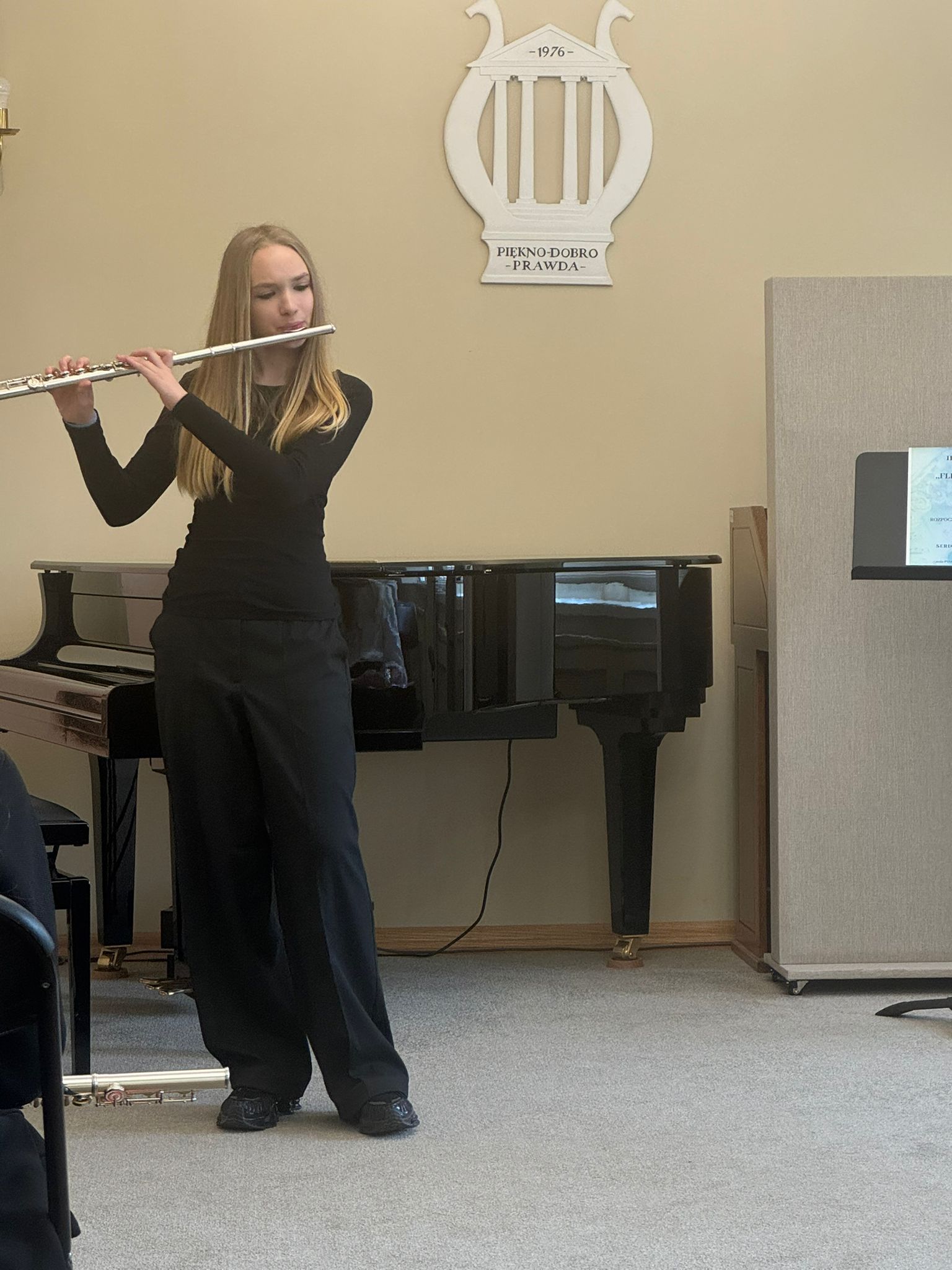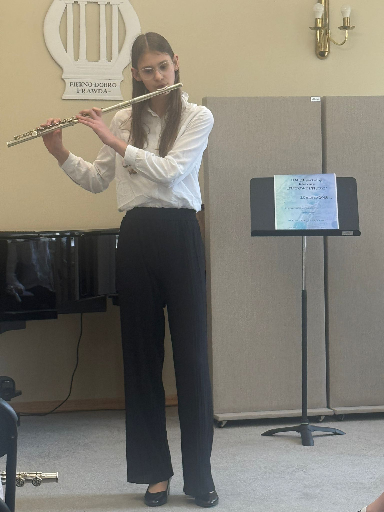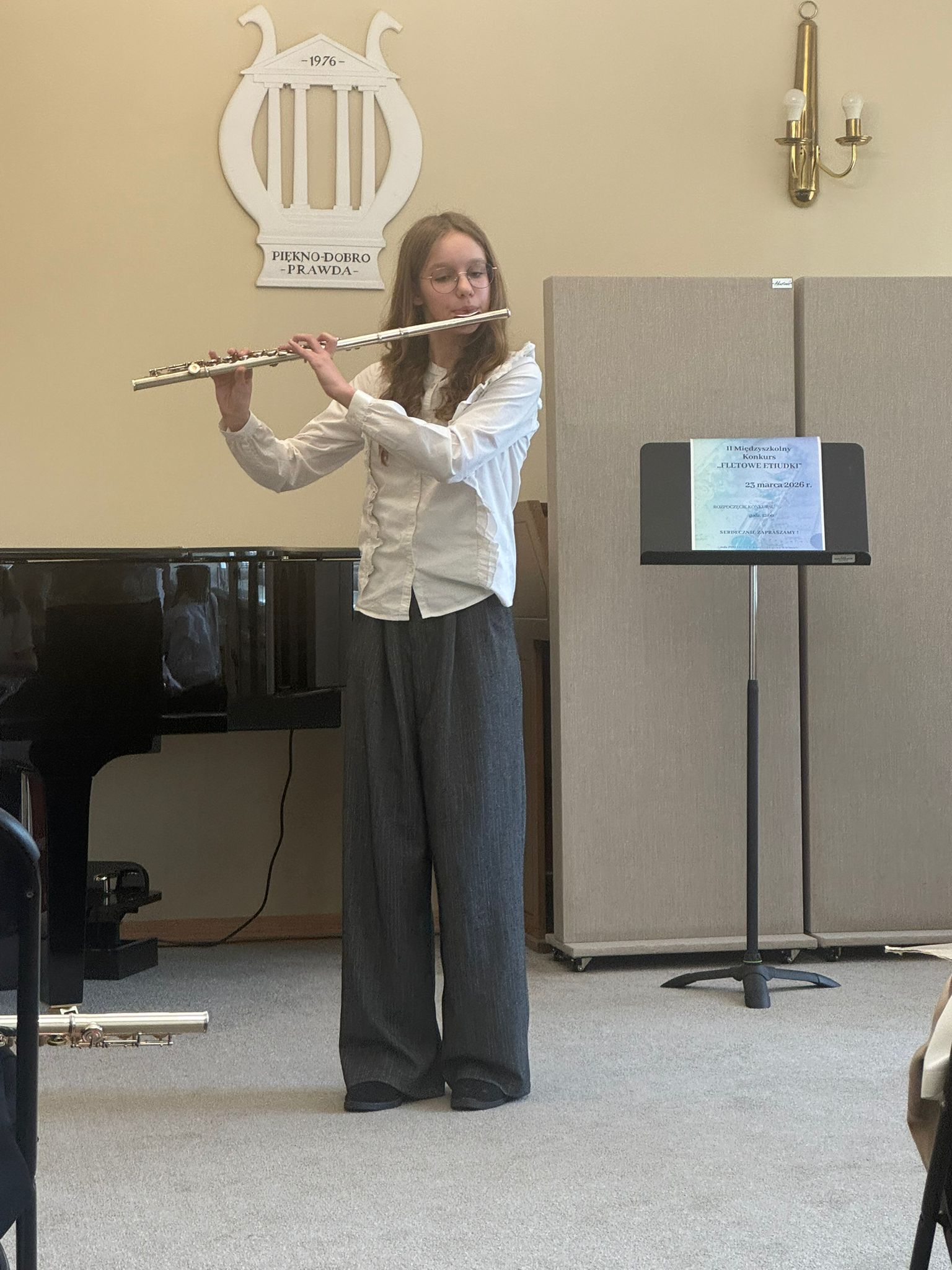 23 marca br. nasze Flecistki wzięły udział w II Międzyszkolnym Konkursie "Fletowe Etiudki" we Wschowie. Zgodnie z regulaminem, Dziewczynki zaprezentowały po dwie etiudy, jedną z nut i jedną z pamięci. Wszystkie pięknie reprezentowały naszą Szkołę. Zmagania Flecistek oceniało Jury w składzie: Przewodniczący - mgr Szymon Franek - Dyrektor Szkoły, mgr Izabela Ratajewska oraz mgr Anna Wojtowicz - flecistki. Dwie nasze Uczennice zostały Laureatkami: Zofia Szymaniak i Emilia Woźniak oraz dwie przywiozły Wyróżnienie: Helena Woźniak i Dorota Kałek.