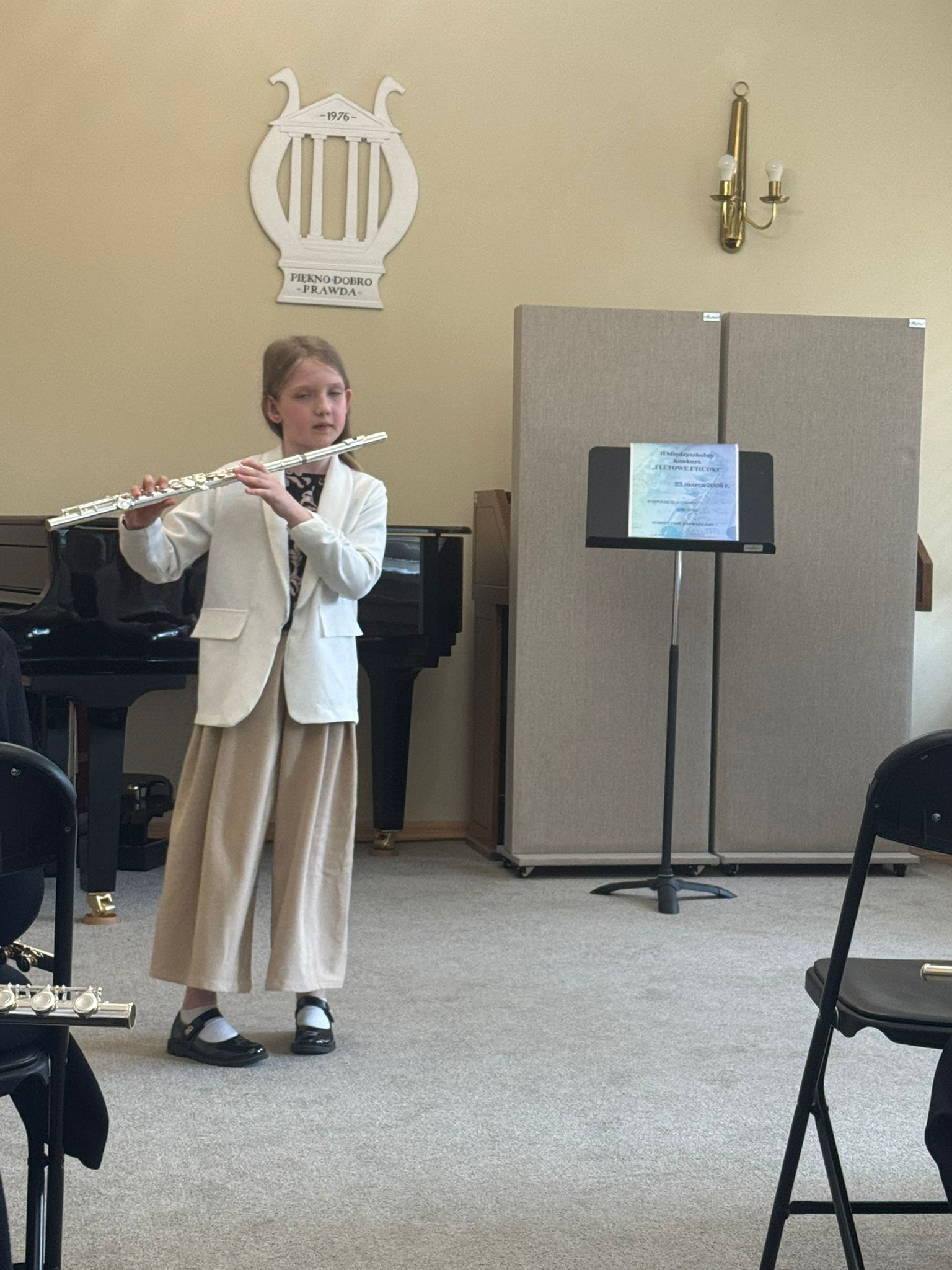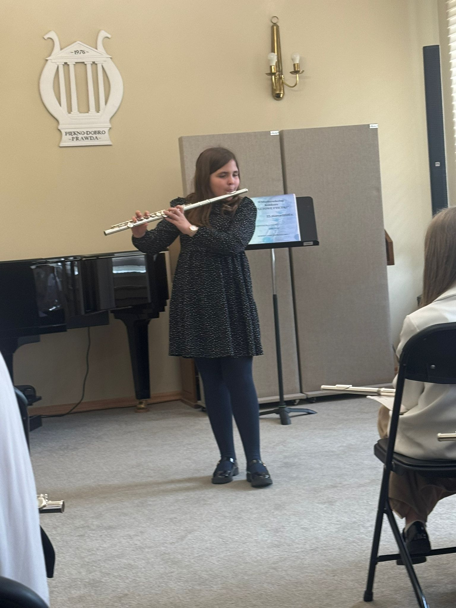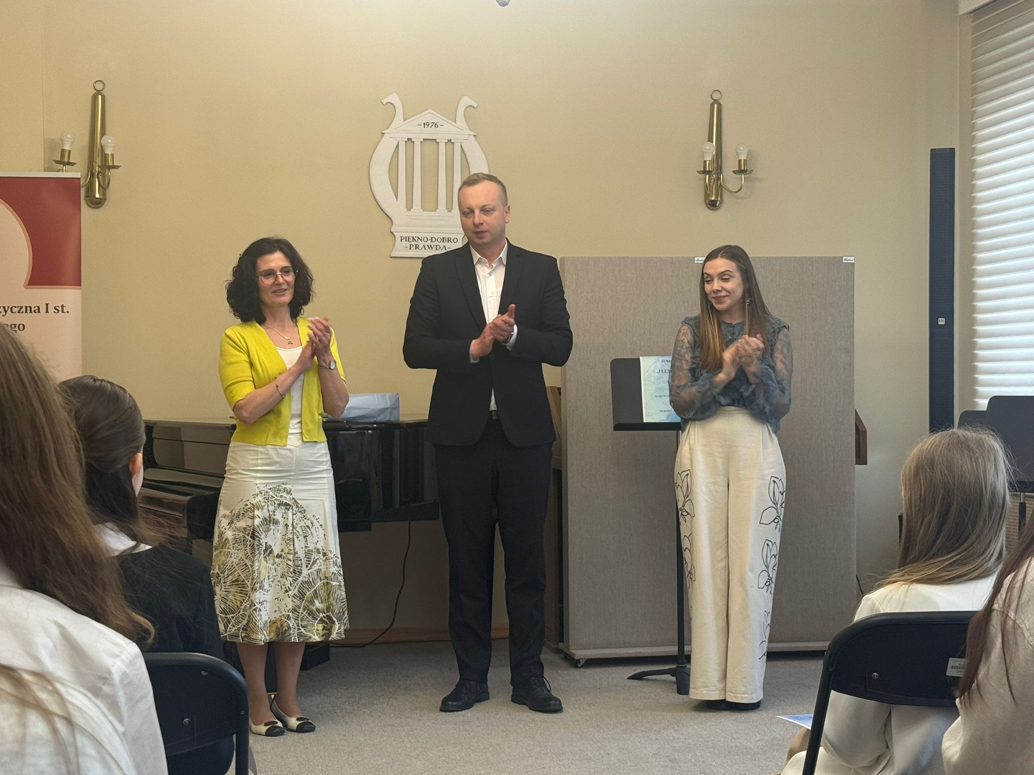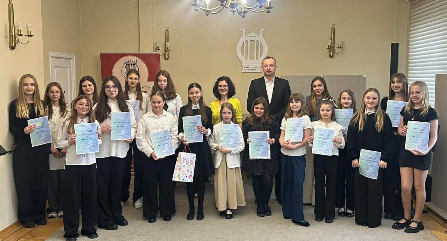 23 marca br. nasze Flecistki wzięły udział w II Międzyszkolnym Konkursie "Fletowe Etiudki" we Wschowie. Zgodnie z regulaminem, Dziewczynki zaprezentowały po dwie etiudy, jedną z nut i jedną z pamięci. Wszystkie pięknie reprezentowały naszą Szkołę. Zmagania Flecistek oceniało Jury w składzie: Przewodniczący - mgr Szymon Franek - Dyrektor Szkoły, mgr Izabela Ratajewska oraz mgr Anna Wojtowicz - flecistki. Dwie nasze Uczennice zostały Laureatkami: Zofia Szymaniak i Emilia Woźniak oraz dwie przywiozły Wyróżnienie: Helena Woźniak i Dorota Kałek.