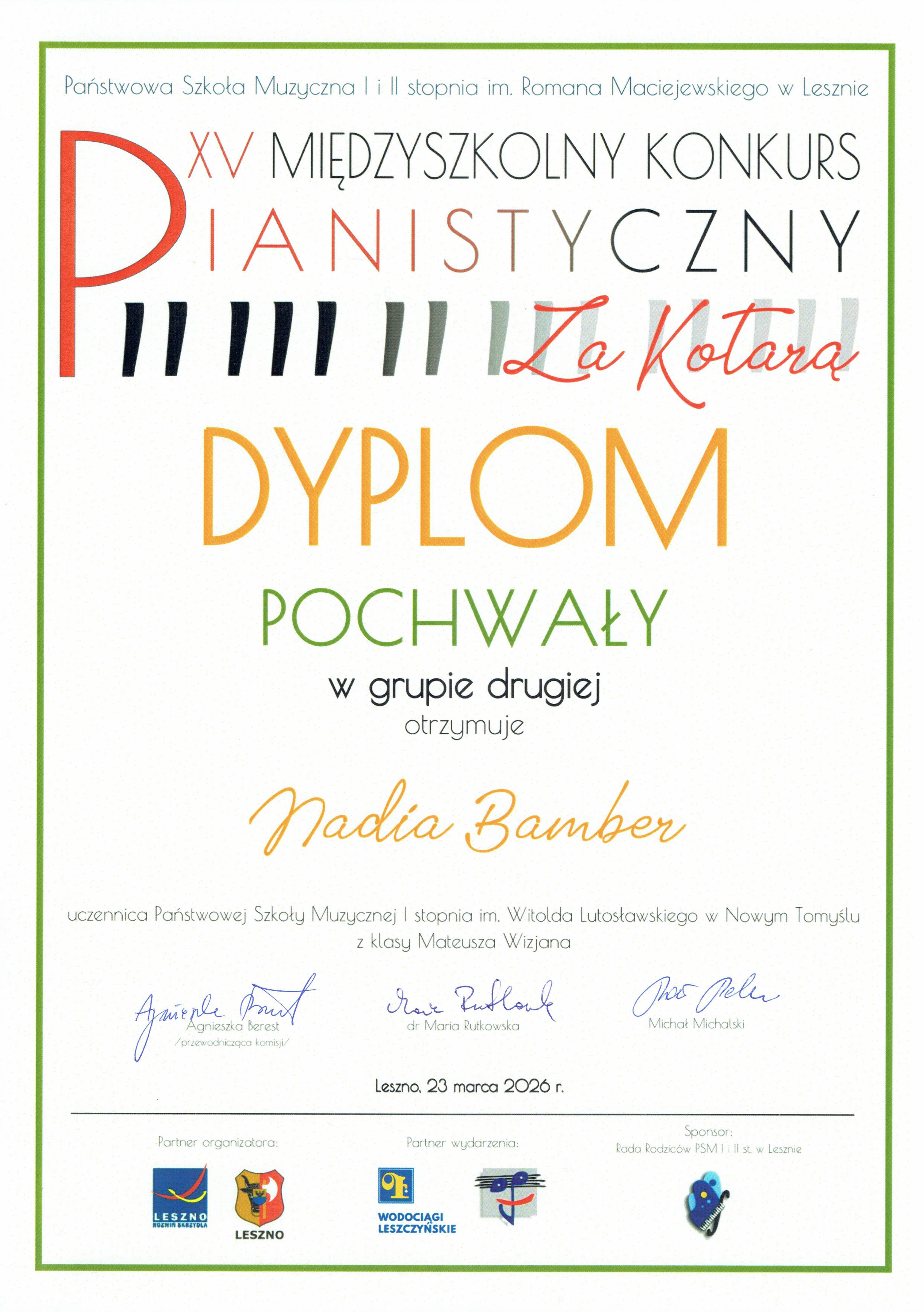23.03.2026 - XV Międzyszkolny Konkurs Pianistyczny „Za kotarą” - Leszno