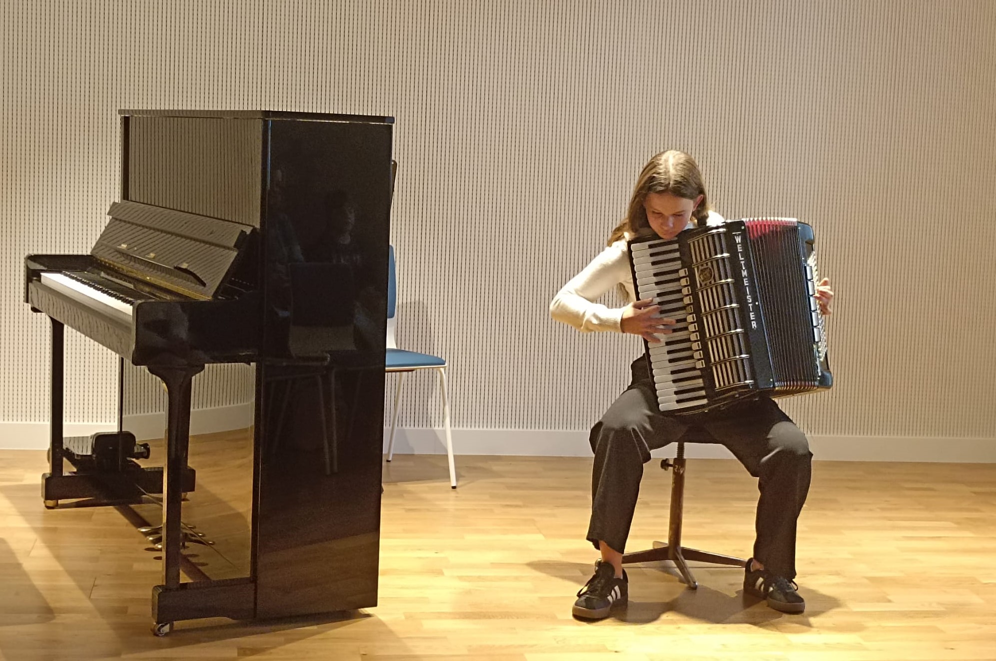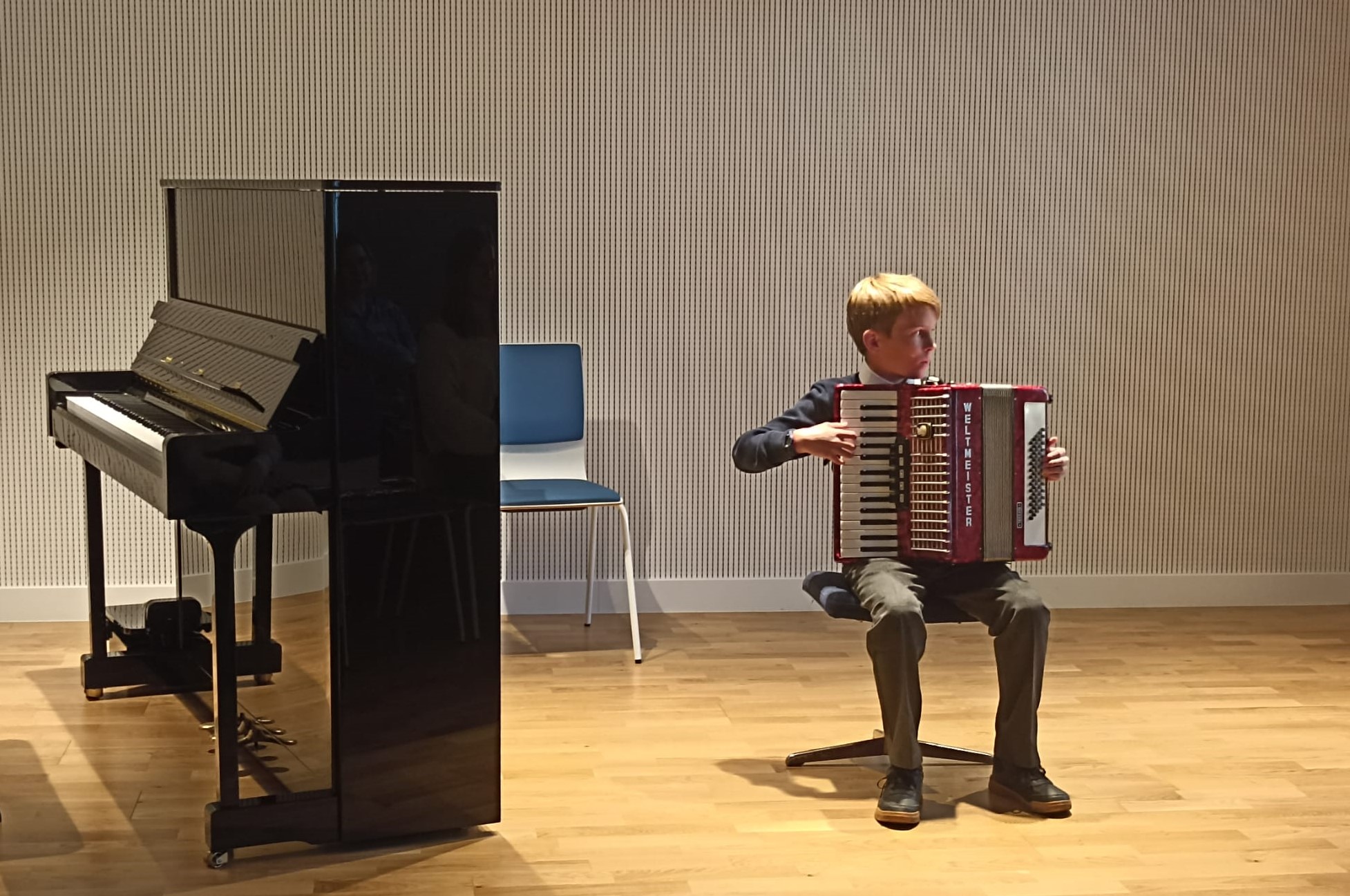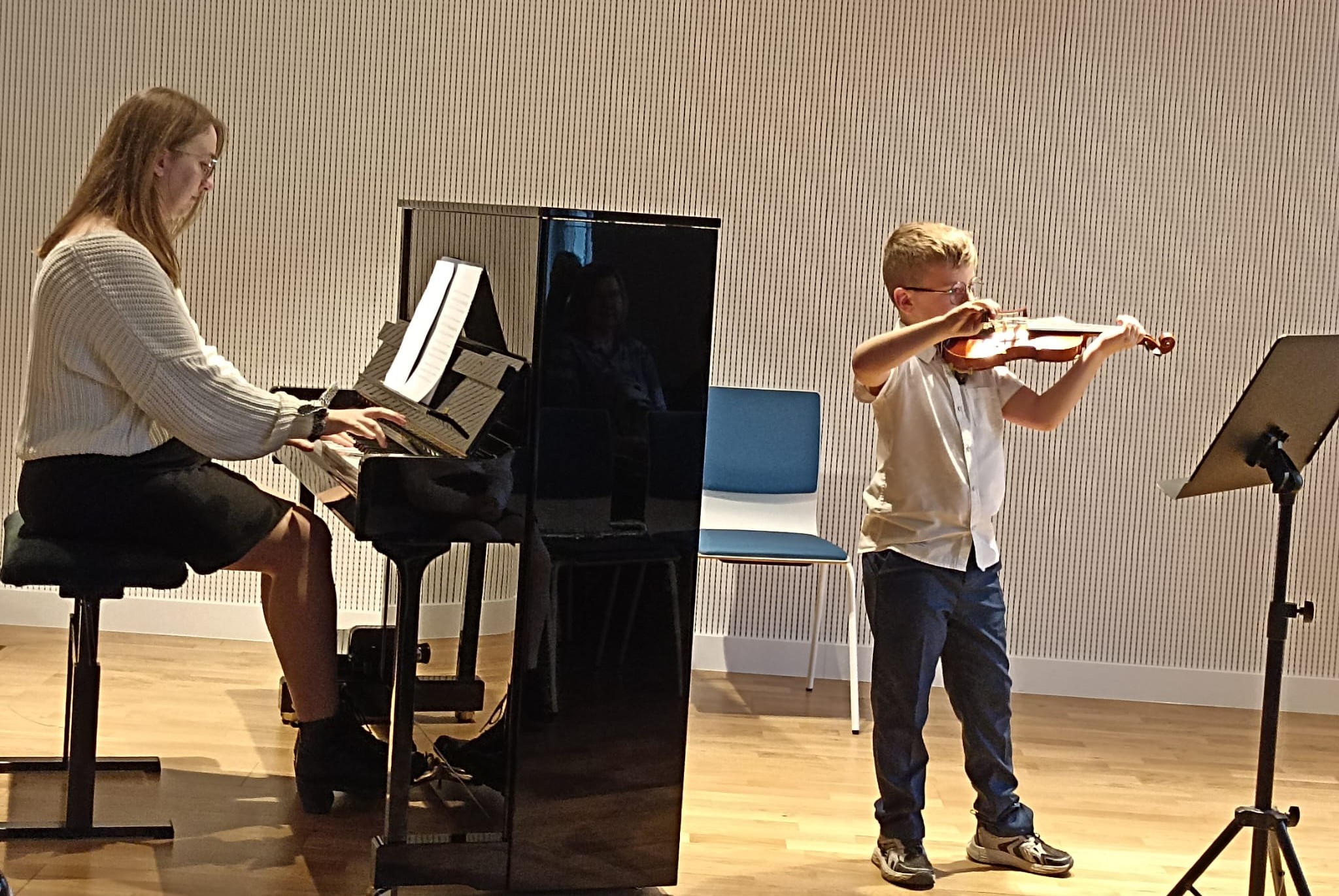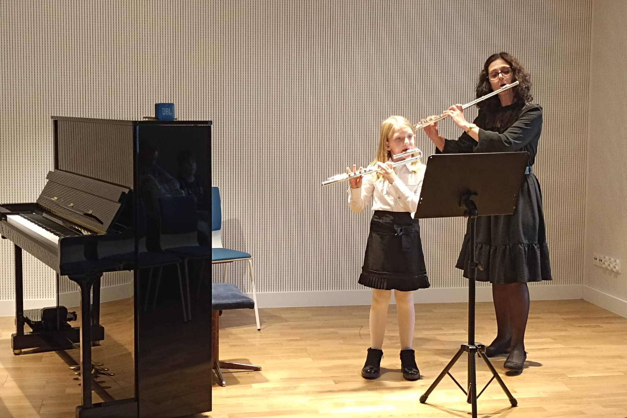 W miniony piątek, na piękne rozpoczęcie weekendu, odbył się kolejny koncert z cyklu "Gramy Sobie". Zgromadzona publiczność złożona z najbliższych była świadkiem wspaniałych wykonań, słuchając gry na trąbce, fletach, skrzypcach, fortepianie, gitarze i akordeonie. Był to dzień prób i okazji do wzorowego okiełznania tremy - był to też wspaniały moment dwóch scenicznych debiutów! Serdecznie gratulujemy wykonawcom, dziękujemy wspaniałej publiczności oraz Radzie Rodziców za wsparcie, już teraz zapraszając wszystkich do udziału w kolejnych muzycznych wydarzeniach