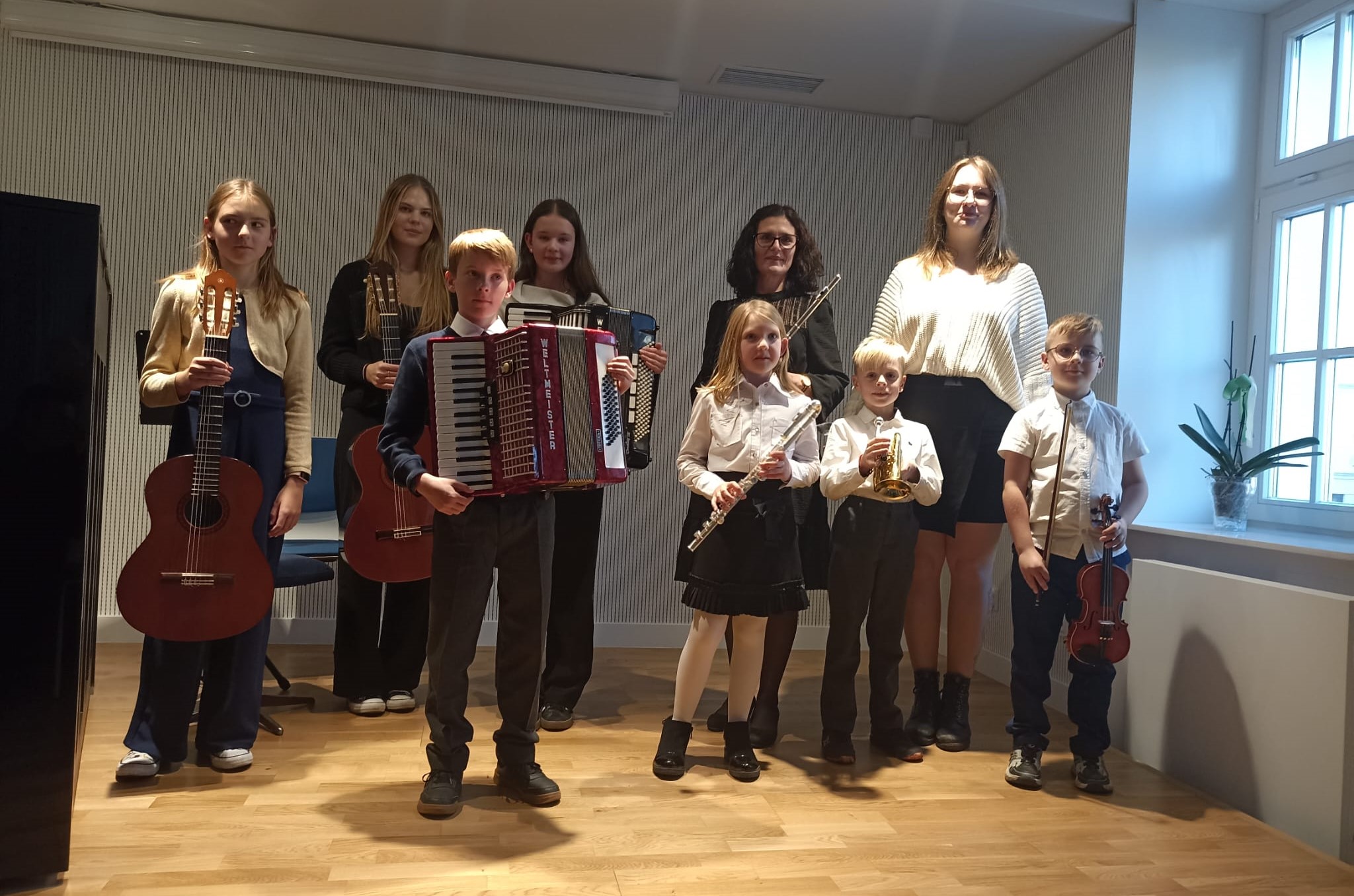 Wykonawcami koncertu byli: Aleksander Maziec z klasy fortepianu pana Mateusza Wizjana, Tymon Marszałkowski z klasy skrzypiec pani Sylwii Kaczmarek-Subery, Jerzy Poschwald z klasy trąbki pana Sławomira Framskiego, Zuzanna Załucka z klasy fletu pani Anny Wojtowicz wraz z Nauczycielką, gitarzystki z klasy pana Stanisława Janaszaka: Marcelina Szukała i Inez Dybizbańska oraz akordeoniści z klasy pana Tomasza Milera: Nikodem Ford oraz Nadia Jankun