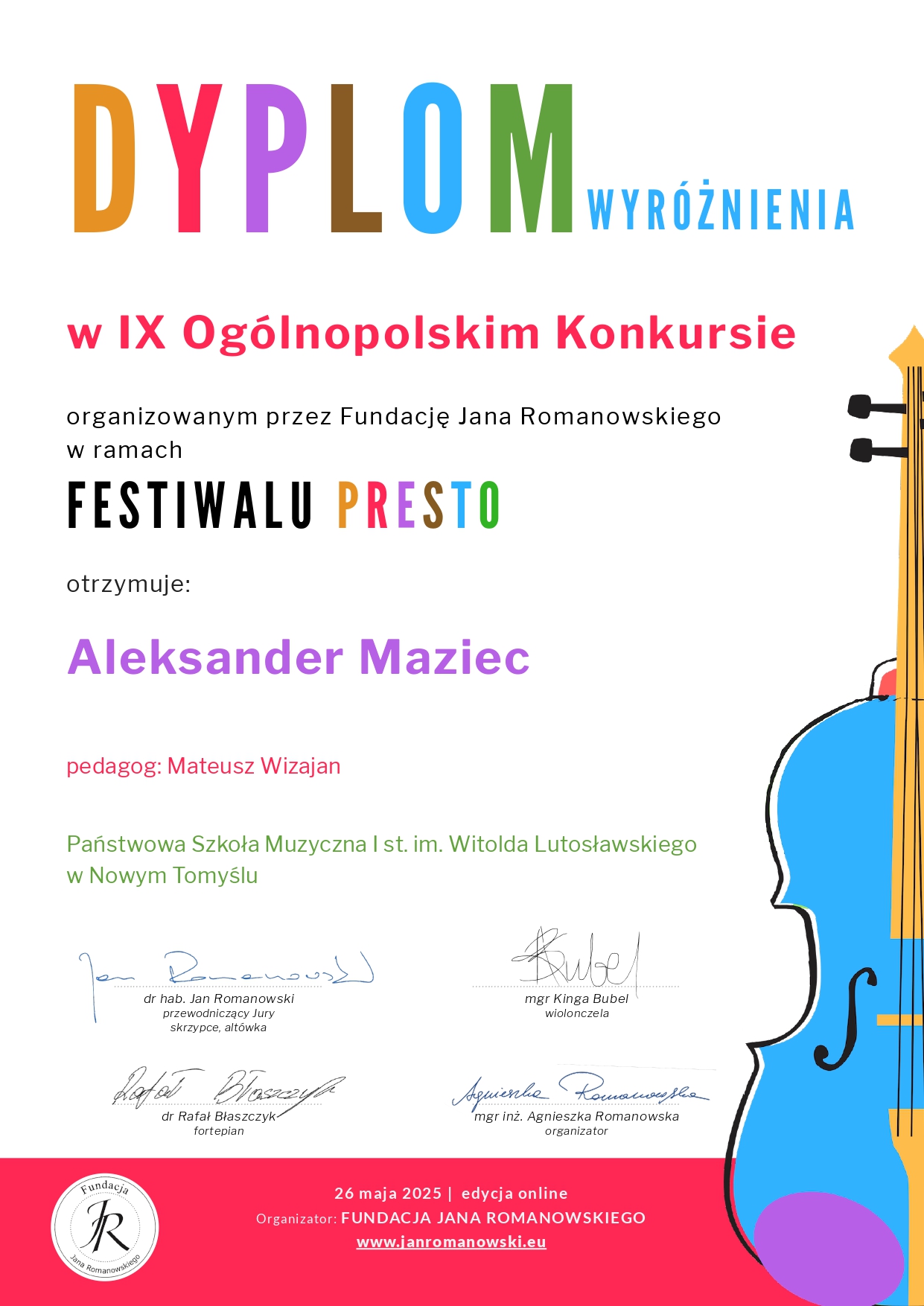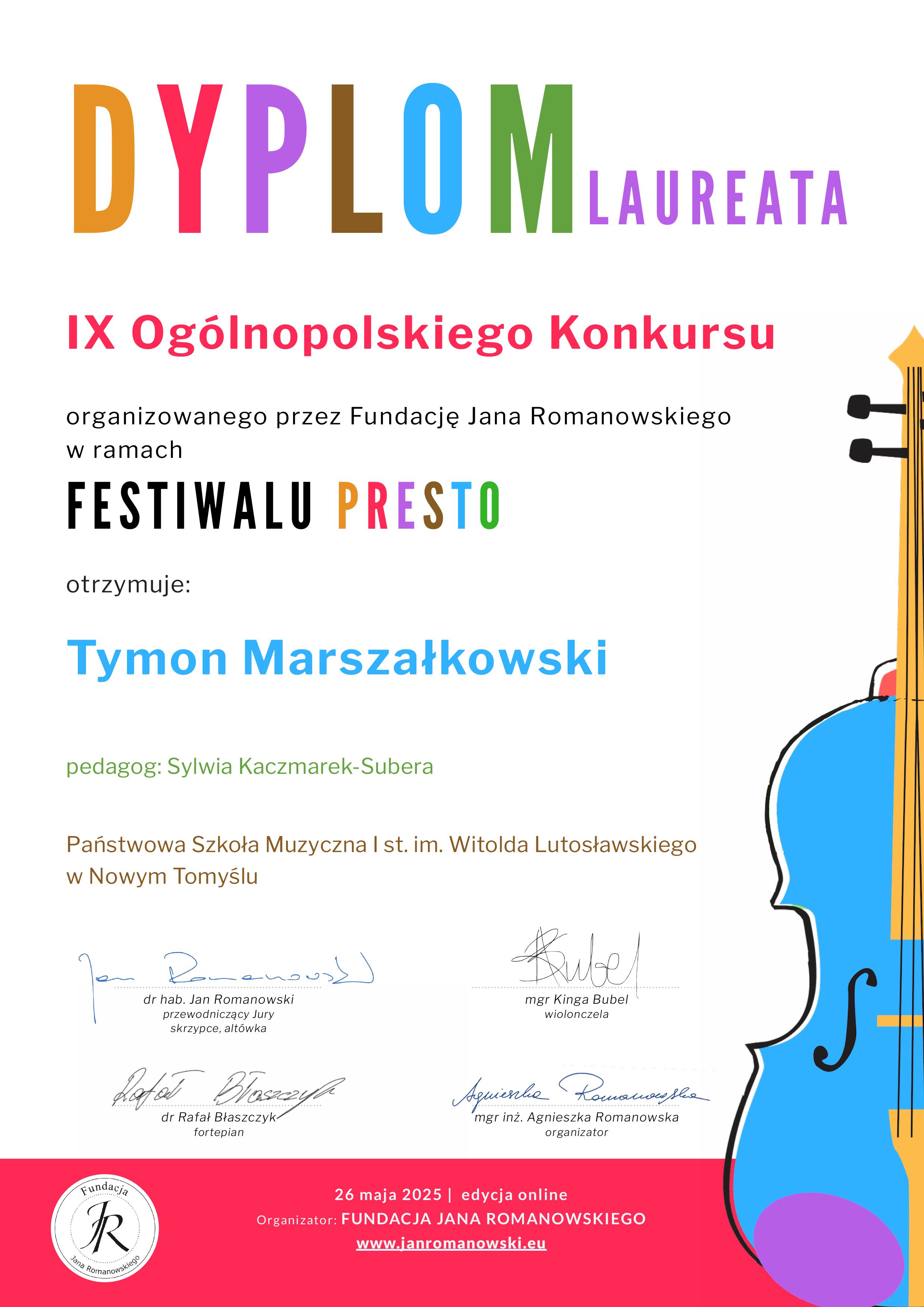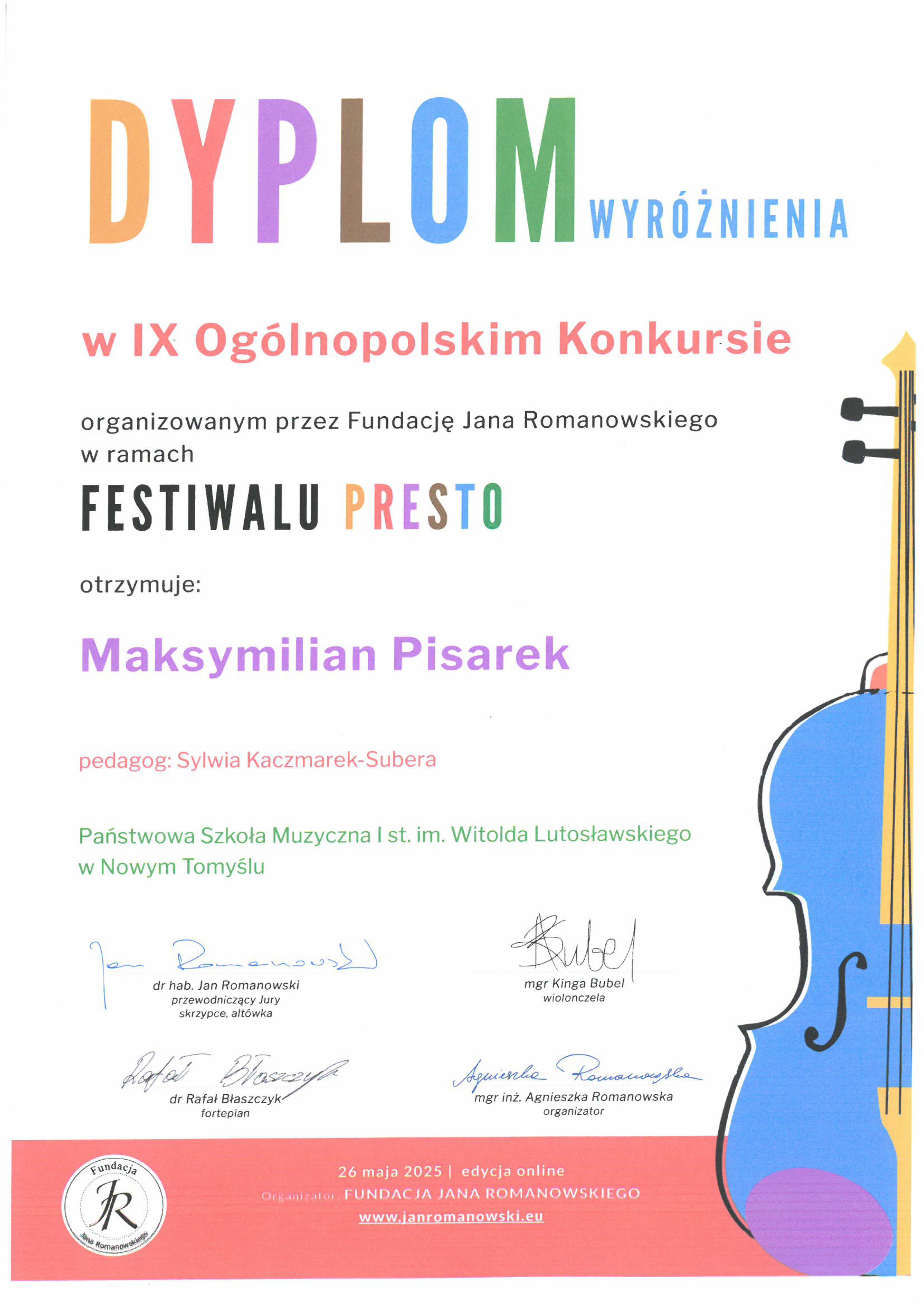 26.05.2025 - IX Ogólnopolski Konkurs odbywający się w ramach Festiwalu Presto