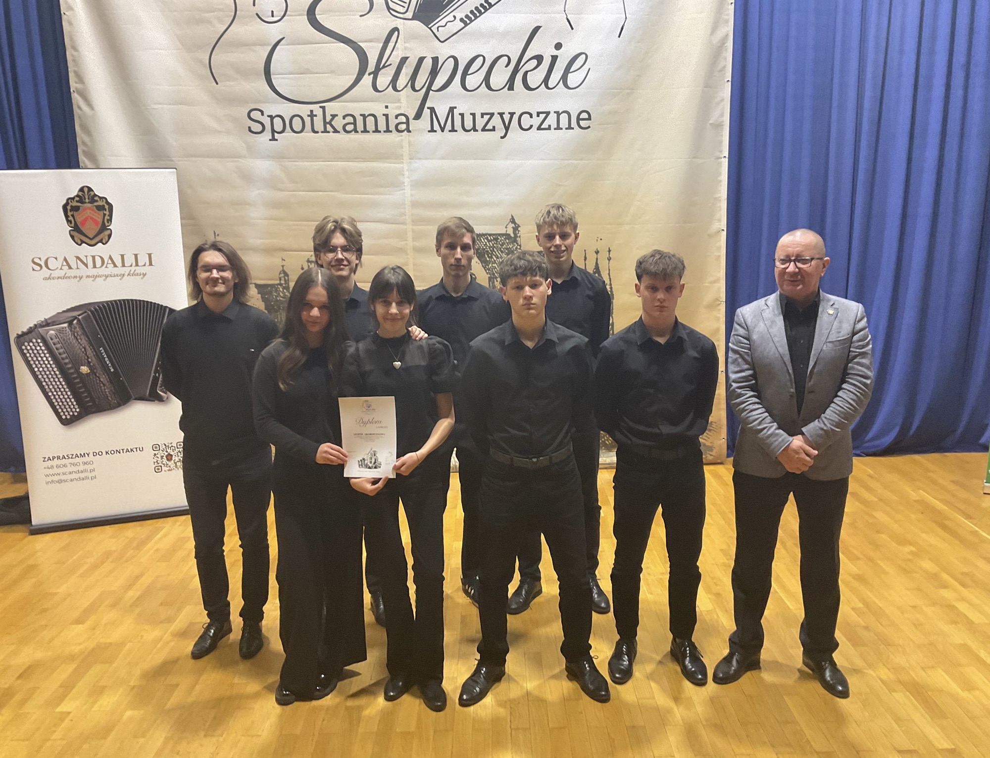 Zespół Akordeonowy prowadzony przez pana Tomasza Milera w składzie: Ksawery Piter, Aleksander Knop, Nadia Jankun, Aleksander Maziec, Laura Knop, Maksymilian Dziechciarek, Miłosz Migoń, Gabriel Dziechciarek i nauczyciel Tomasz Miler otrzymał Dyplom Laureata.