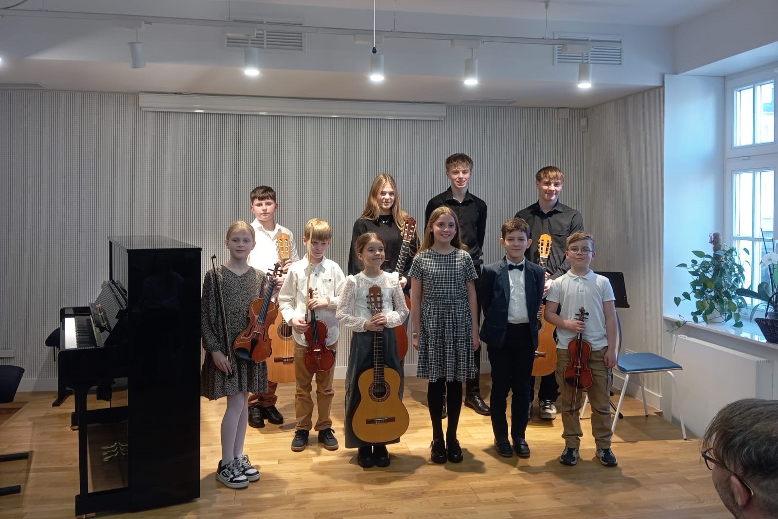 W piątek 28.03.2025 roku odbył się kolejny Koncert z cyklu "Gramy sobie". Wystąpili uczniowie klasy skrzypiec pani Sylwii Kaczmarek- Subera, gitary pana Stanisława Janaszaka oraz fortepianu pana Mateusza Wizjana i pani Anny Nędzewicz.
