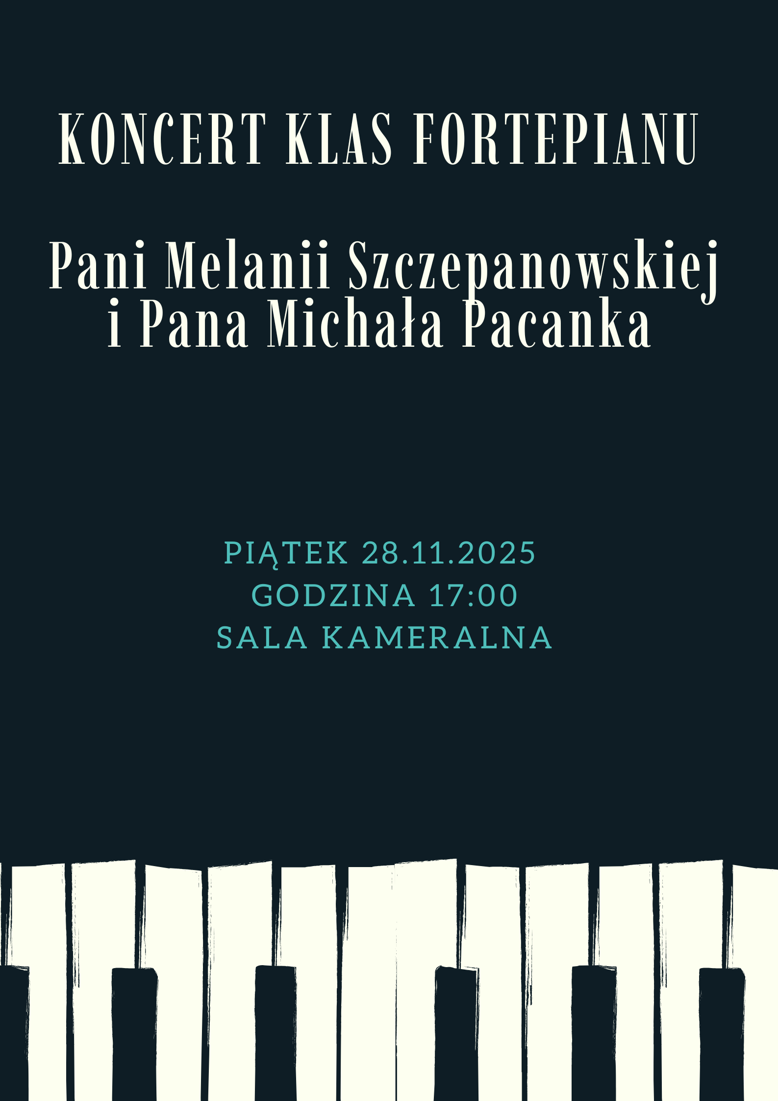 28 listopada odbył się koncert klas fortepianu p. Melanii Szczepanowskiej i p. Michała Pacanka. Uczniowie pięknie zaprezentowali utwory z różnych epok. Dopisała również publiczność w całości wypełniając salę kameralną.