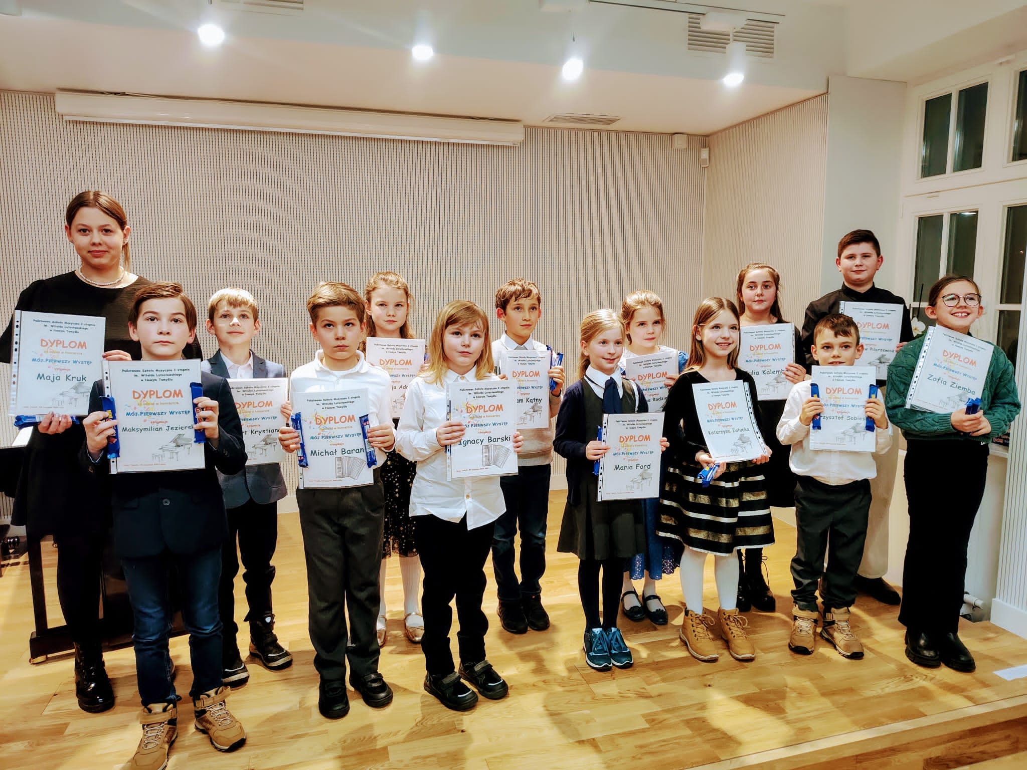 Wystąpiło czternastu uczniów z klasy fortepianu i akordeonu: Adamek Anastazja; Baran Michał; Barski Ignacy; Ford Maria; Jezierski Maksymilian; Kalemba Julia; Kątny Adam; Kruk Maja; Krystianc Robert; Pilarzewicz Stanisław; Rodziewicz Antonina; Sobieski Krzysztof; Załucka Katarzyna; Ziemba Zofia.