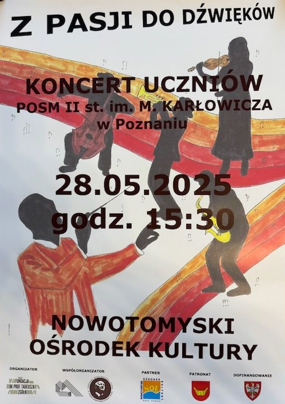 Serdecznie zapraszamy na wyjątkowy koncert, w którym wystąpią Uczniowie Poznańskiej Ogólnokształcącej Szkoły Muzycznej II stopnia im. Mieczysława Karłowicza w Poznaniu. Koncert odbędzie się w środę 28 maja 2025 roku ogodzinie 15:30 w Nowotomyskim Ośroku Kultury.