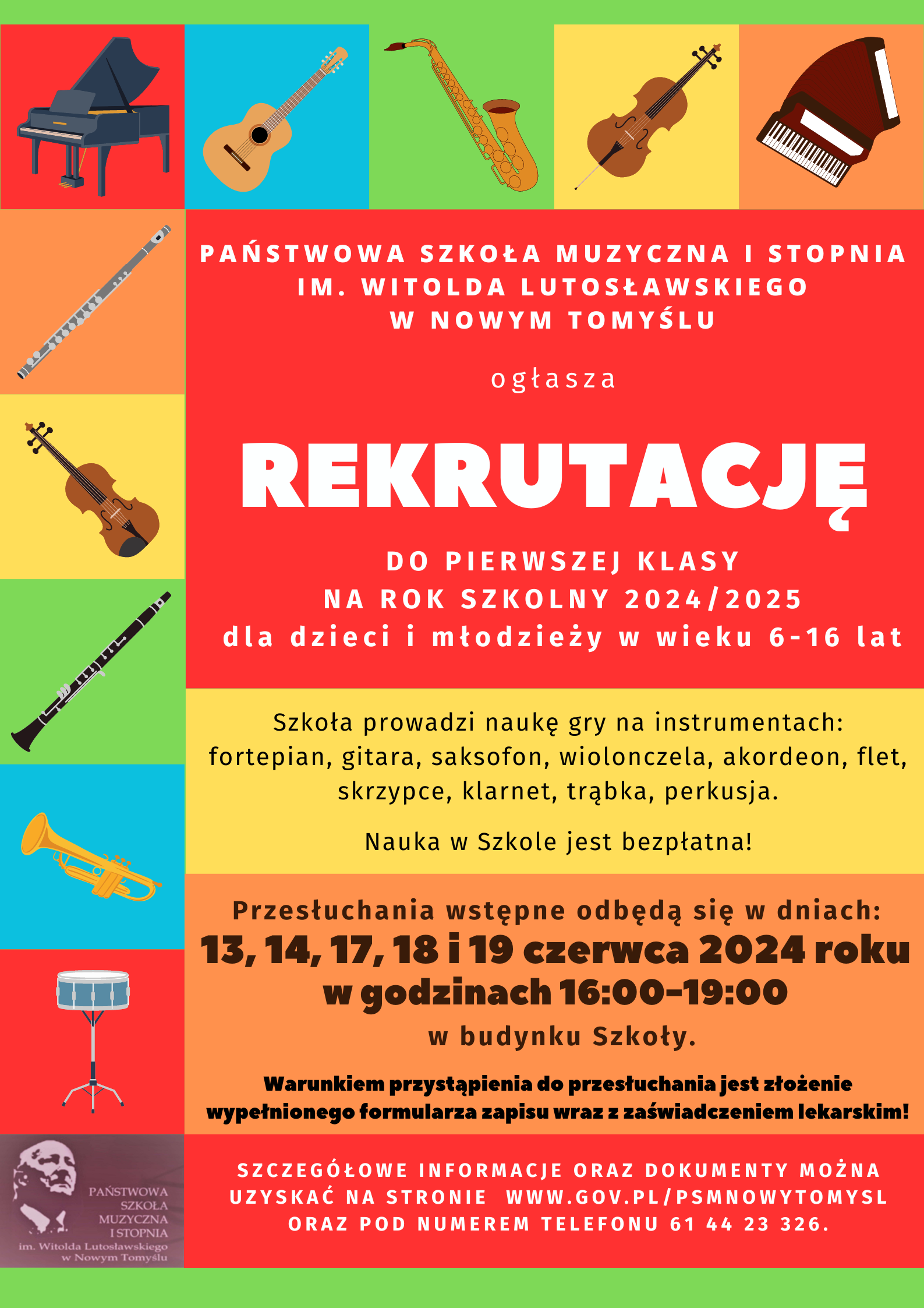 Zapraszamy chętne dzieci do nauki w naszej szkole. Życzymy wiele radości ze spotkań z muzyką.