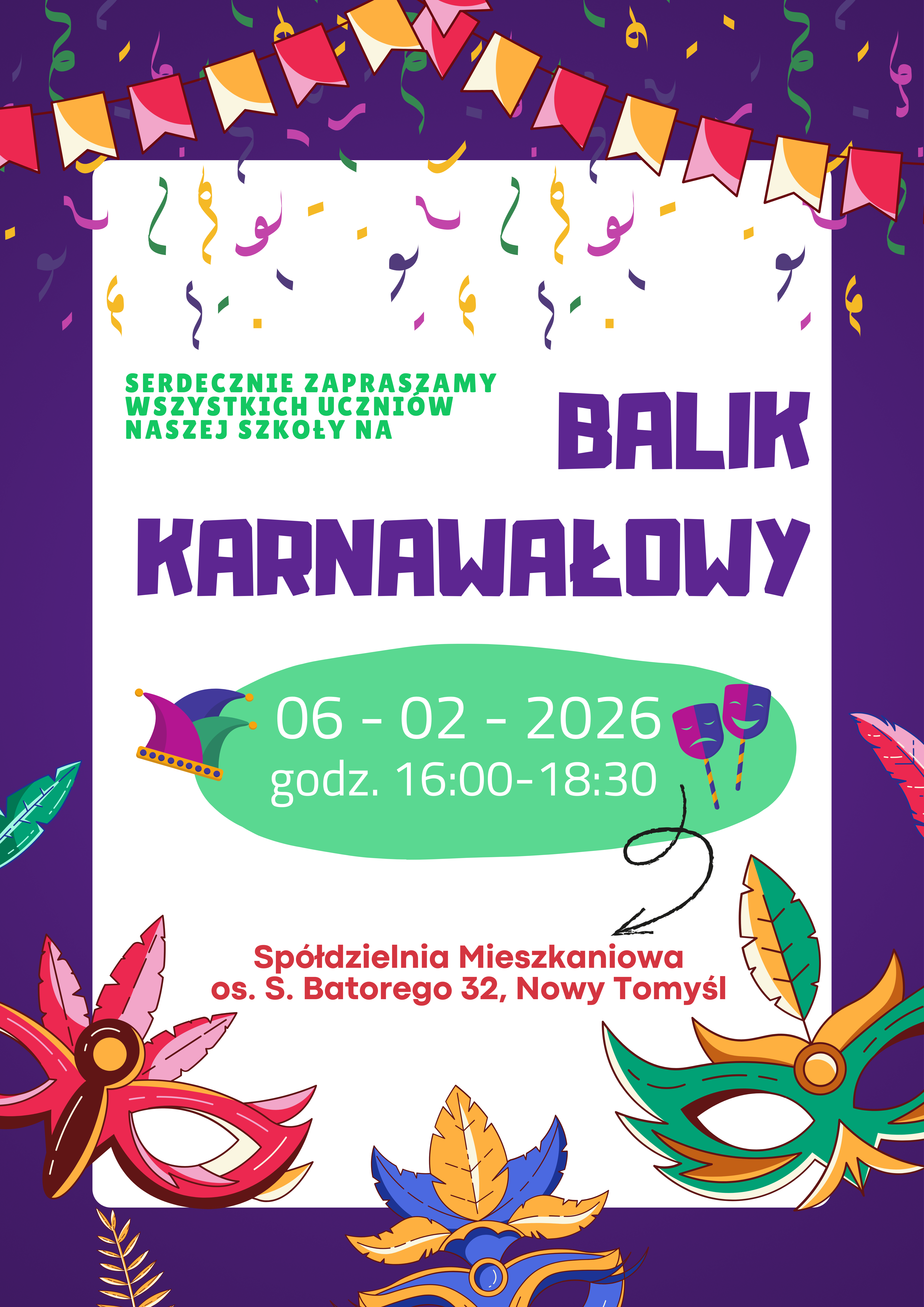 Serdecznie zapraszamy wszystkich uczniów naszej szkoły do wspólnej zabawy karnawałowej!