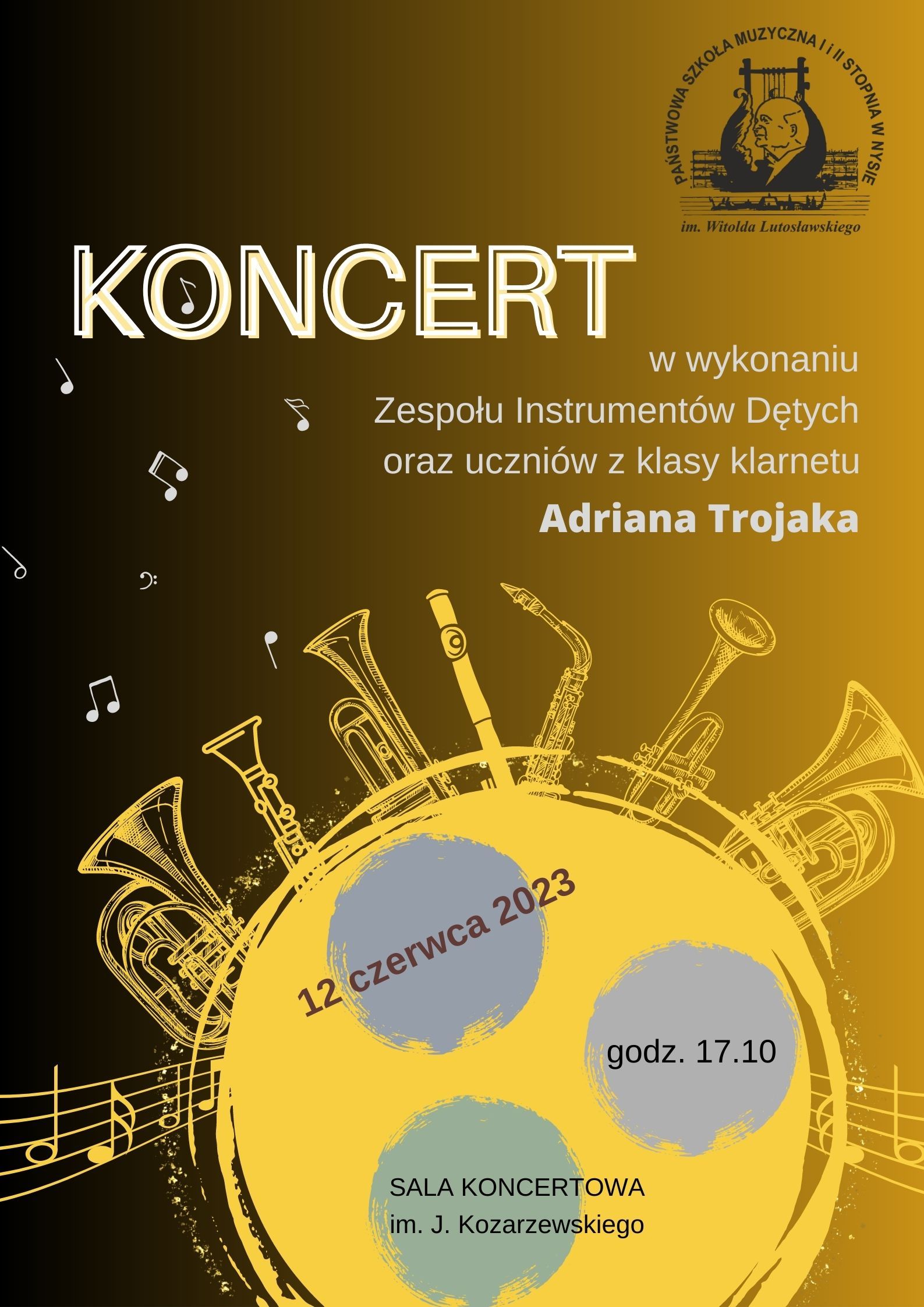 12 czerwca 2023 - Koncert Zespołu Instrumentów Dętych oraz uczniów z klasy klarnetu Adriana Trojaka - Sala Koncertowa PSM I i II stopnia w Nysie.