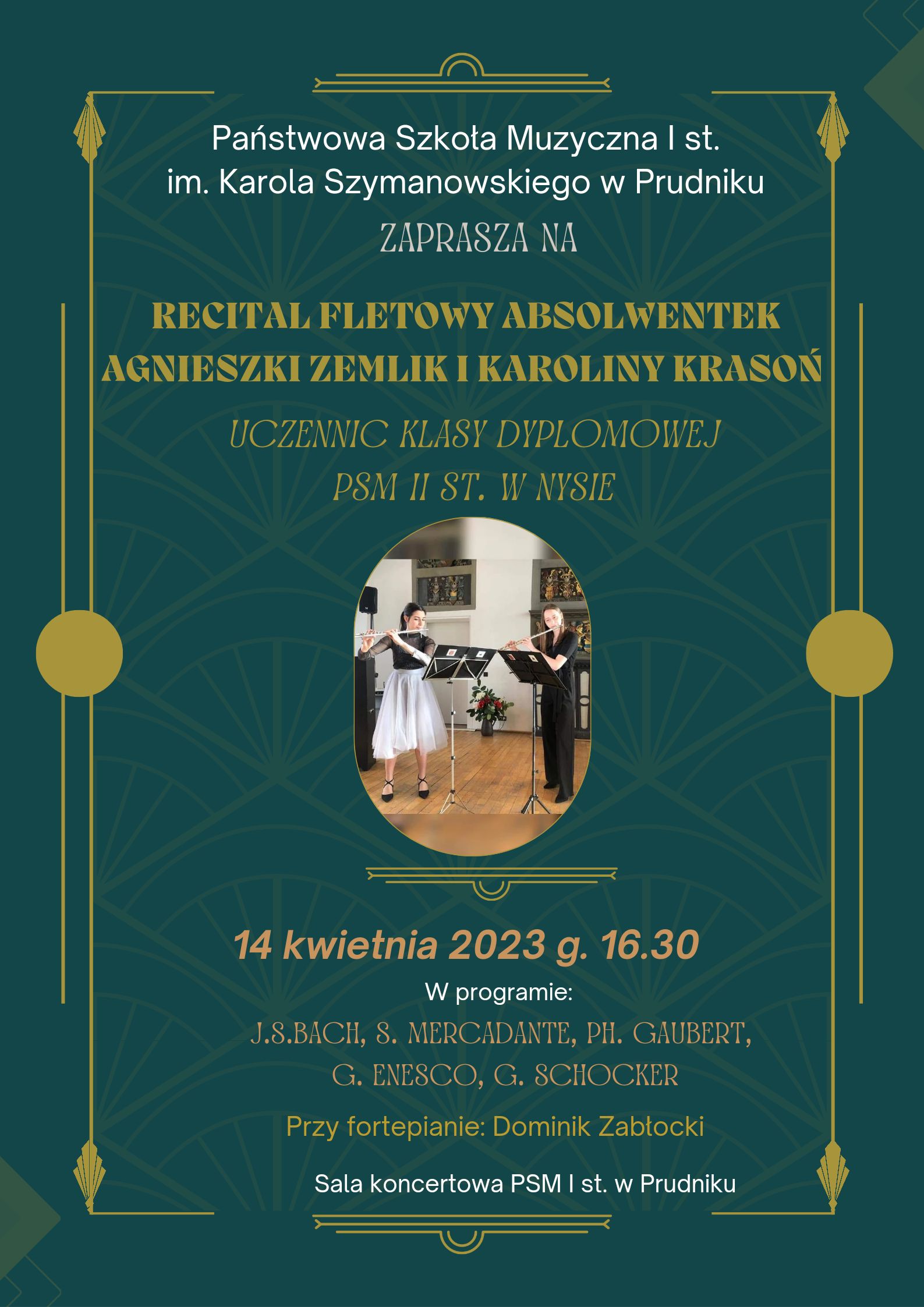 14 kwietnia 2023 - Recital Fletowy Agnieszki Zemlik i Karoliny Krasoń w PSM I stopnia w Prudniku. 13.04.2023