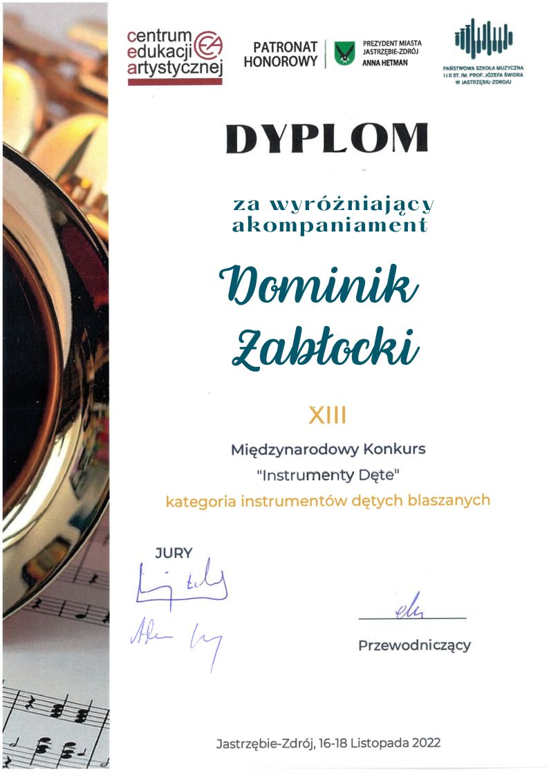 DYPLOM za wyróżniający akompaniament