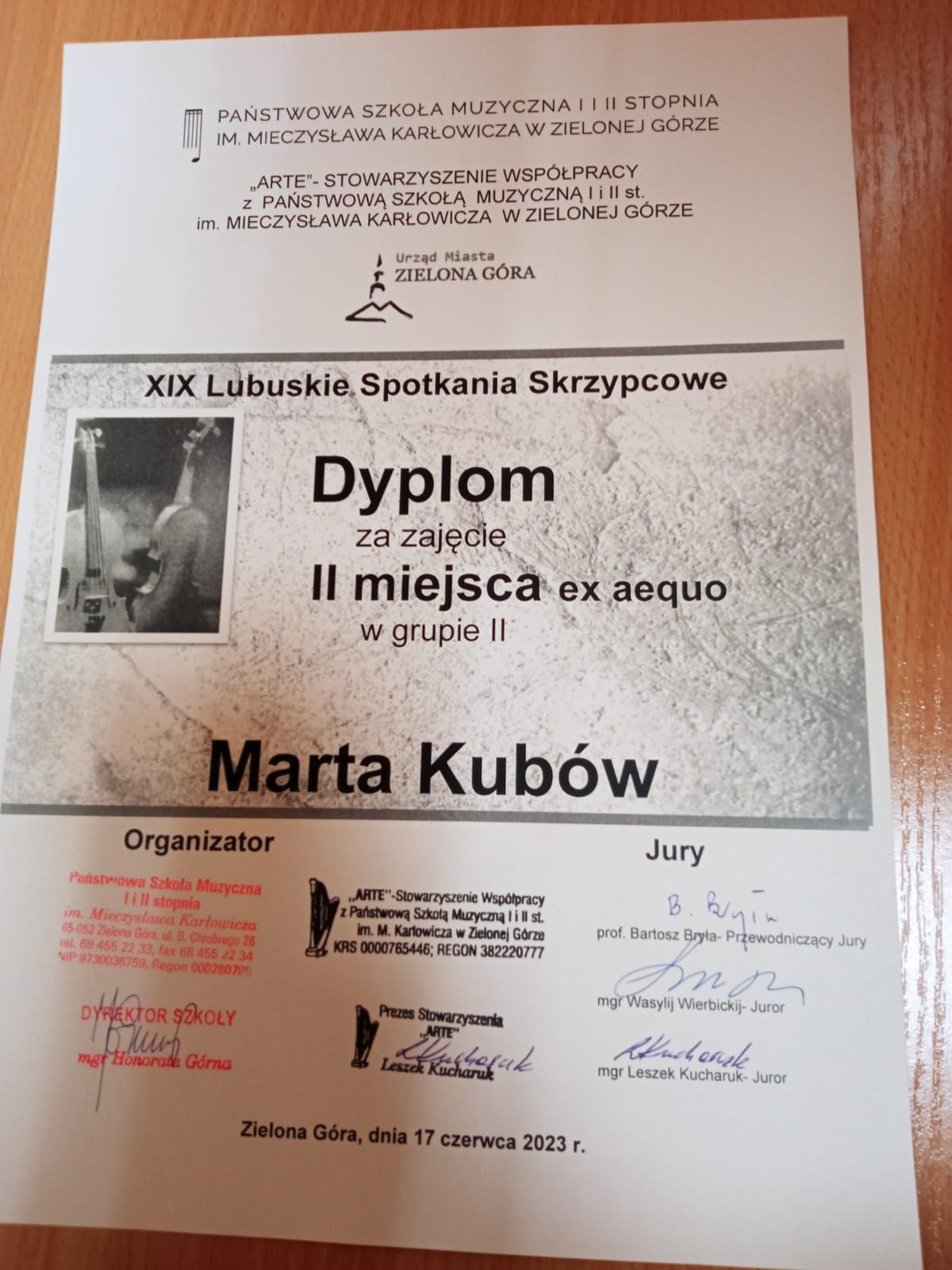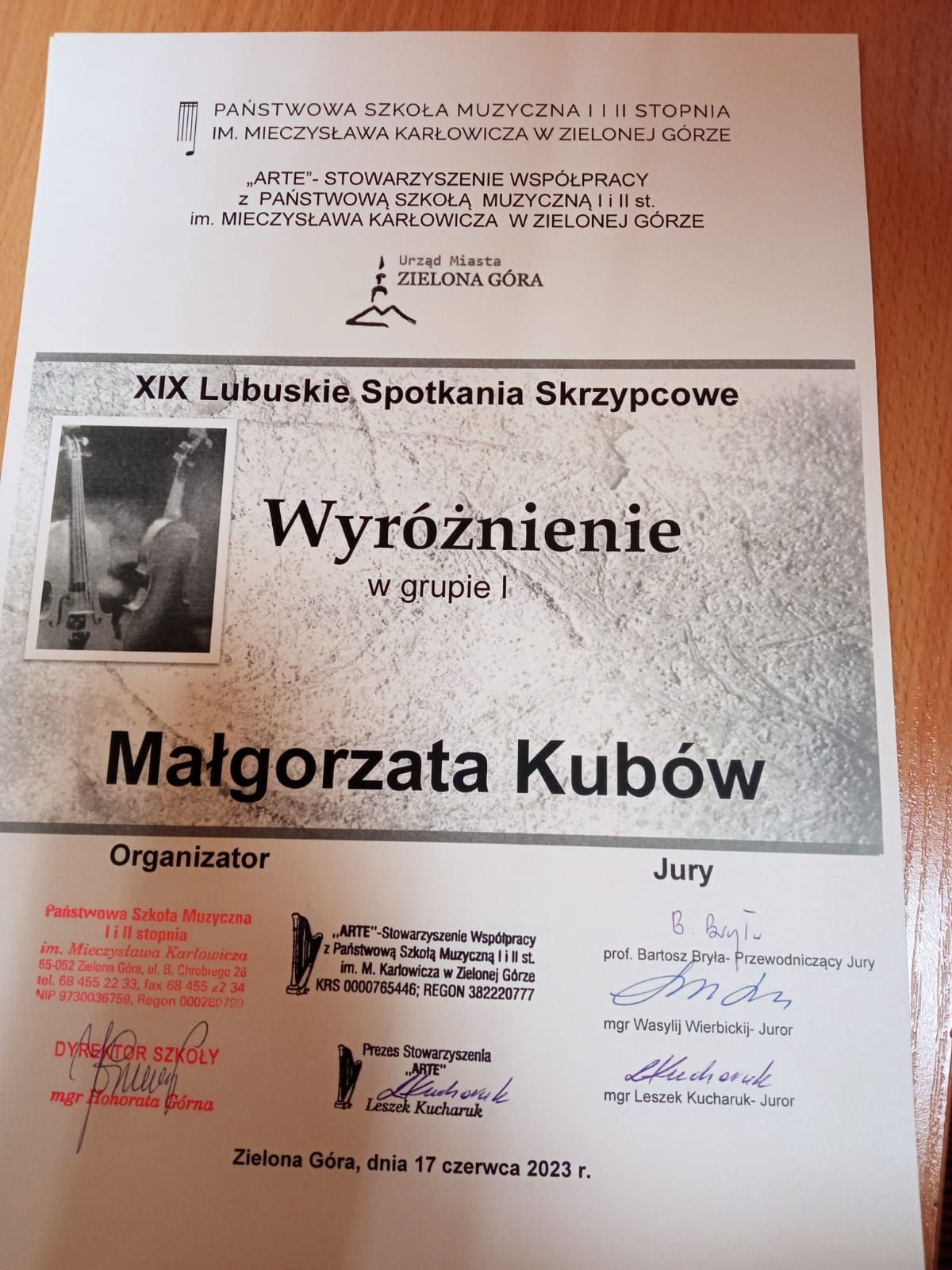 17 czerwca 2023 - Małgorzata i Marta Kubów zostały laureatkami XIX Lubuskich Spotkań Skrzypcowych w Zielonej Górze.