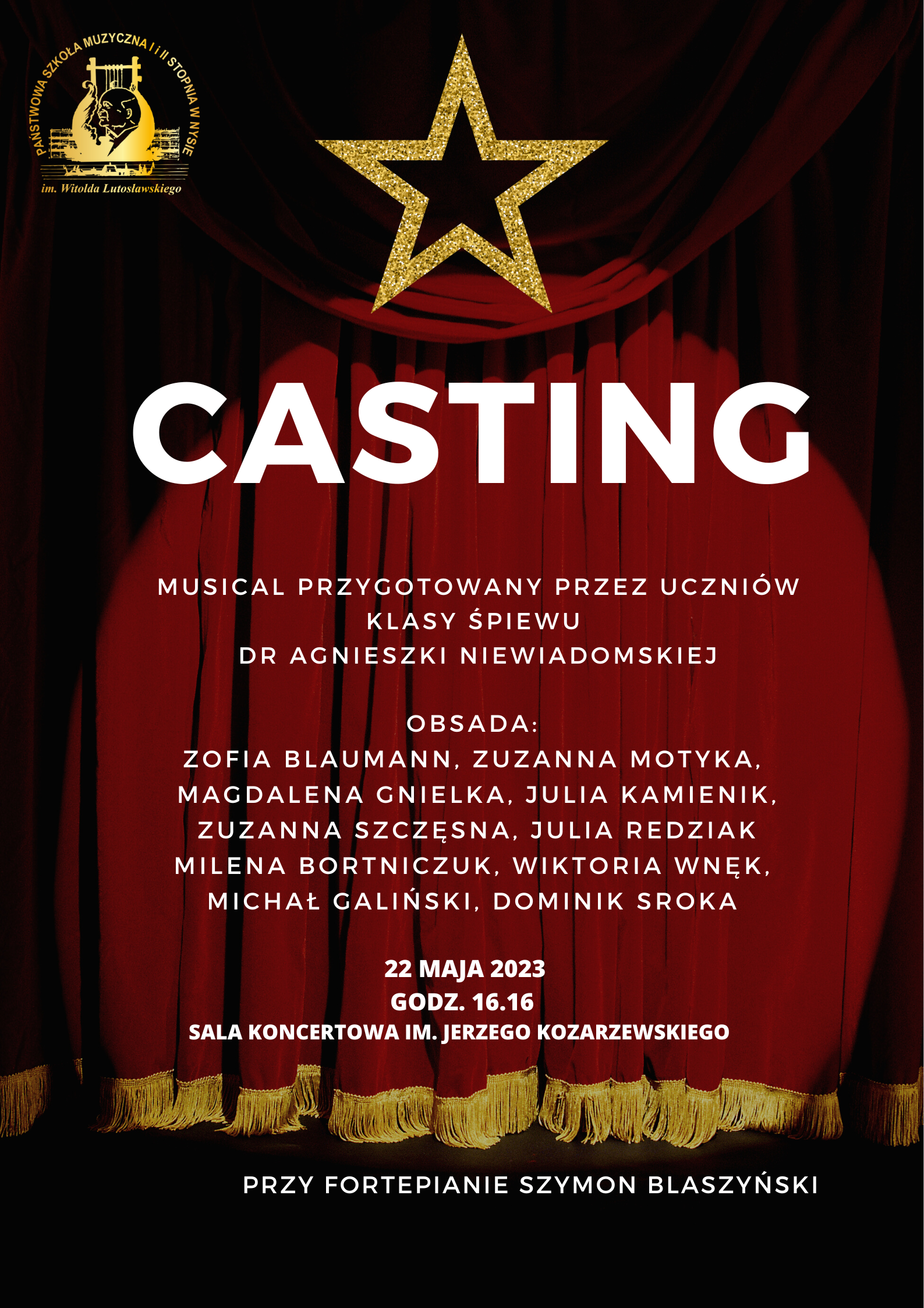 22 maja 2023 - Musical CASTING przygotowany przez uczniów klasy śpiewu Agnieszki Niewiadomskiej.