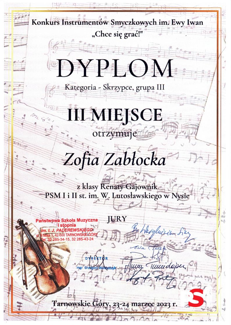 23-24 marca 2023 - Zofia Zabłocka zdobyła III miejsce w konkursie w Tarnowskich Górach