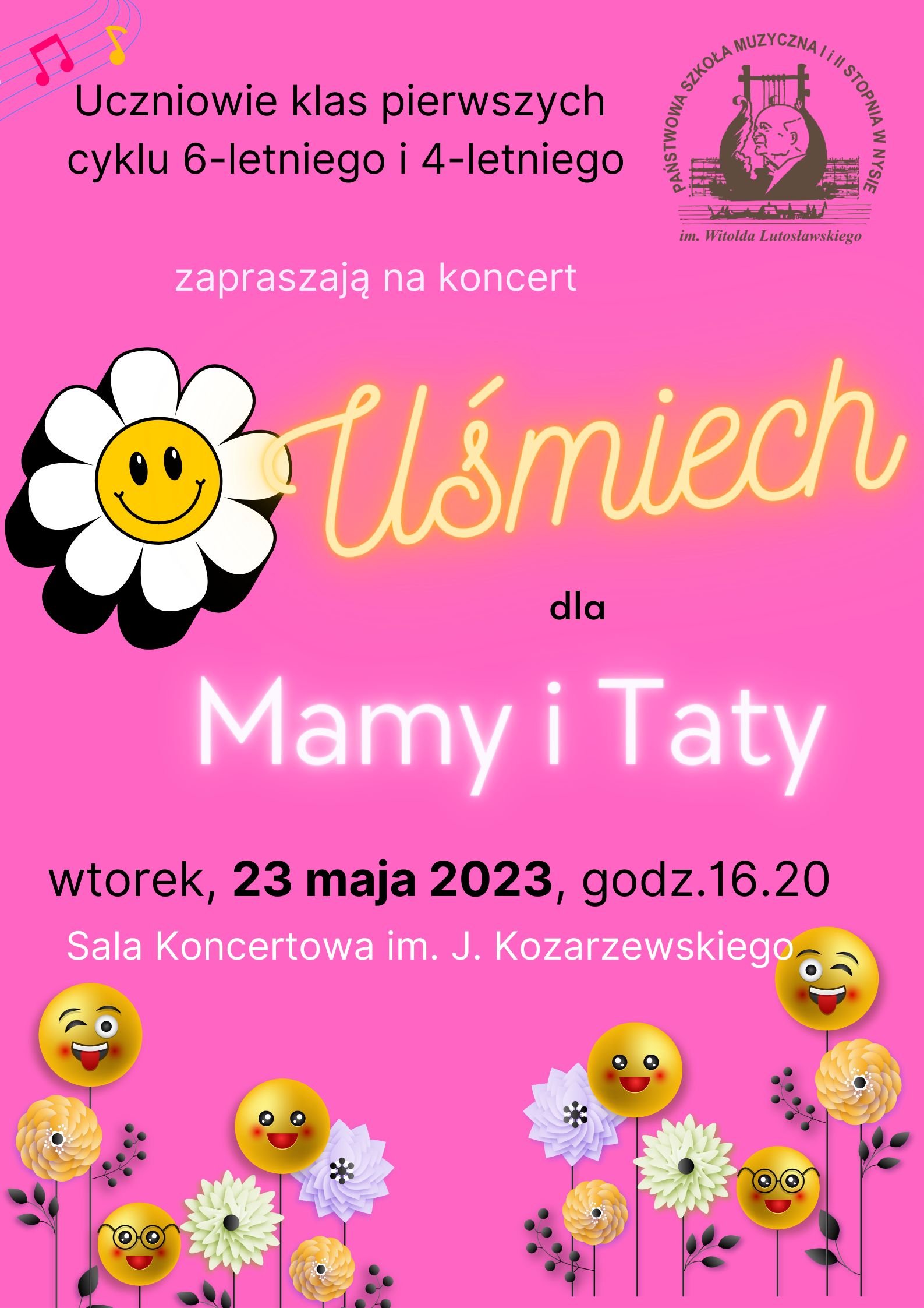 23 maja 2023 - Koncert "Uśmiech dla "Mamy i Taty" w wykonaniu uczniow klas pierwszych PSM I stopnia - Sala Koncertowa.