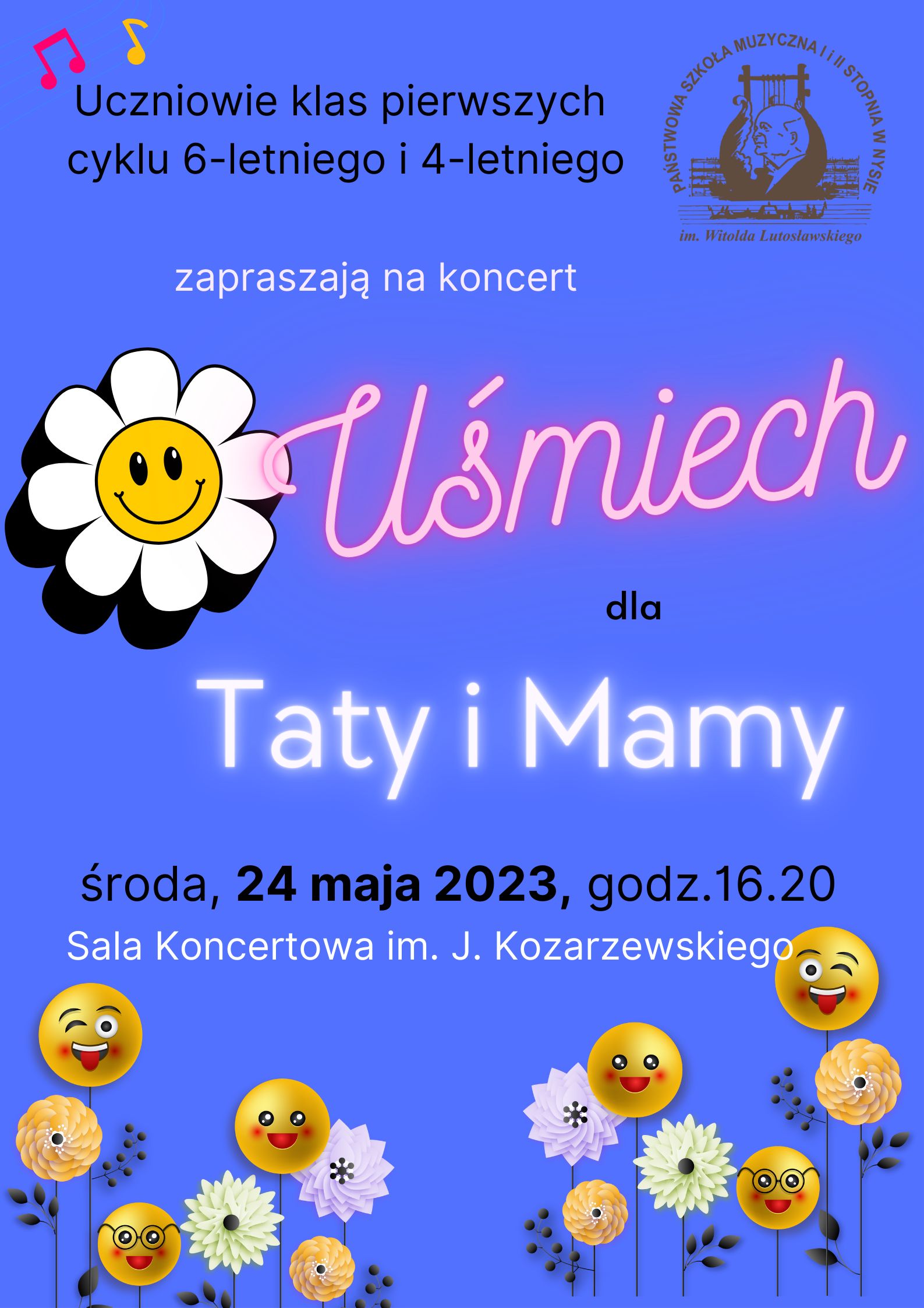 24 maja 2023 - Koncert "Uśmiech dla "Taty i Mamy" w wykonaniu uczniow klas pierwszych PSM I stopnia - Sala Koncertowa.