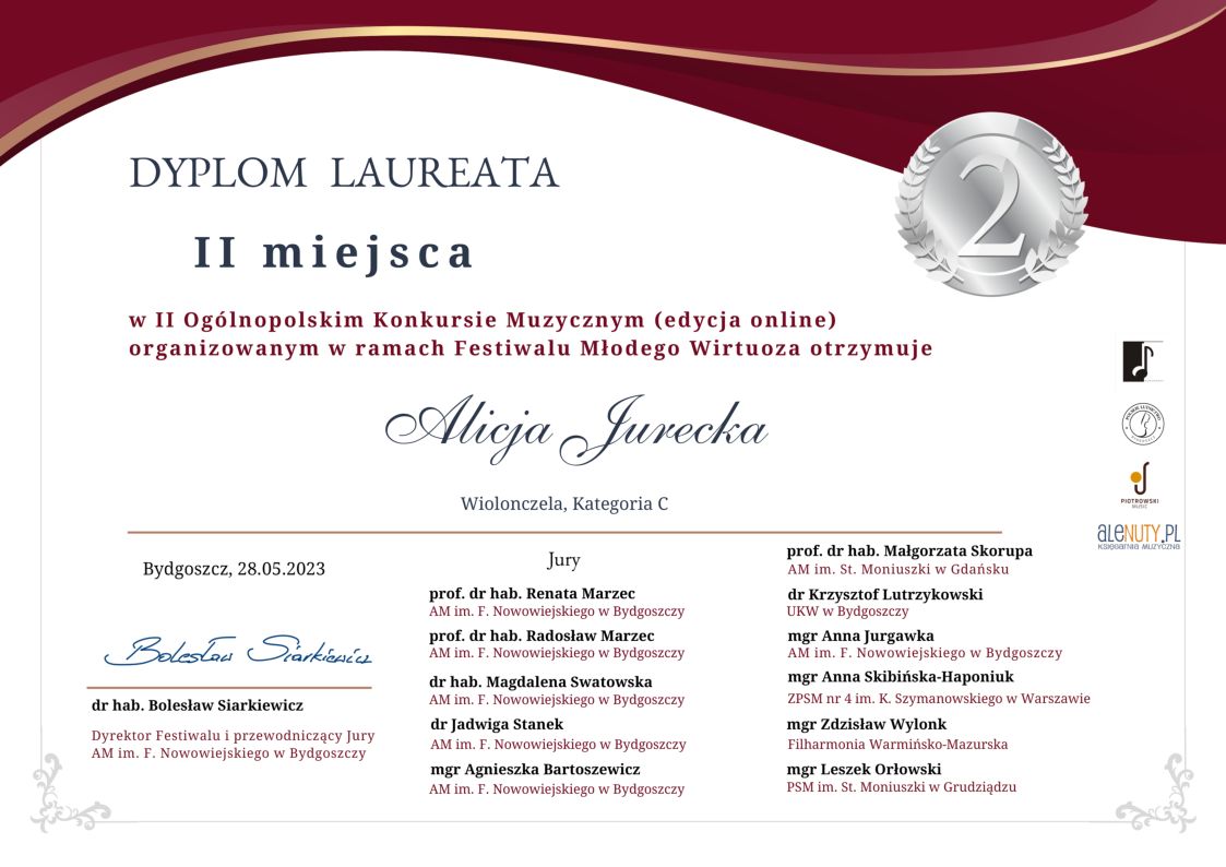 zdobyła ALICJA JURECKA - wiolonczela