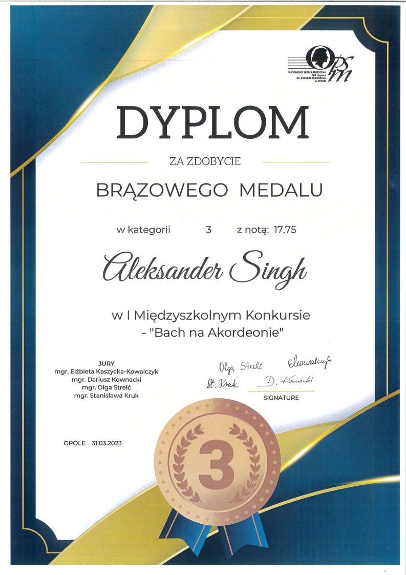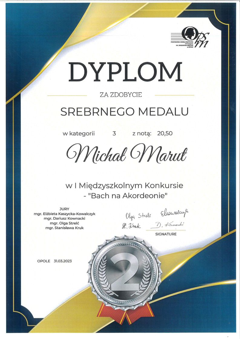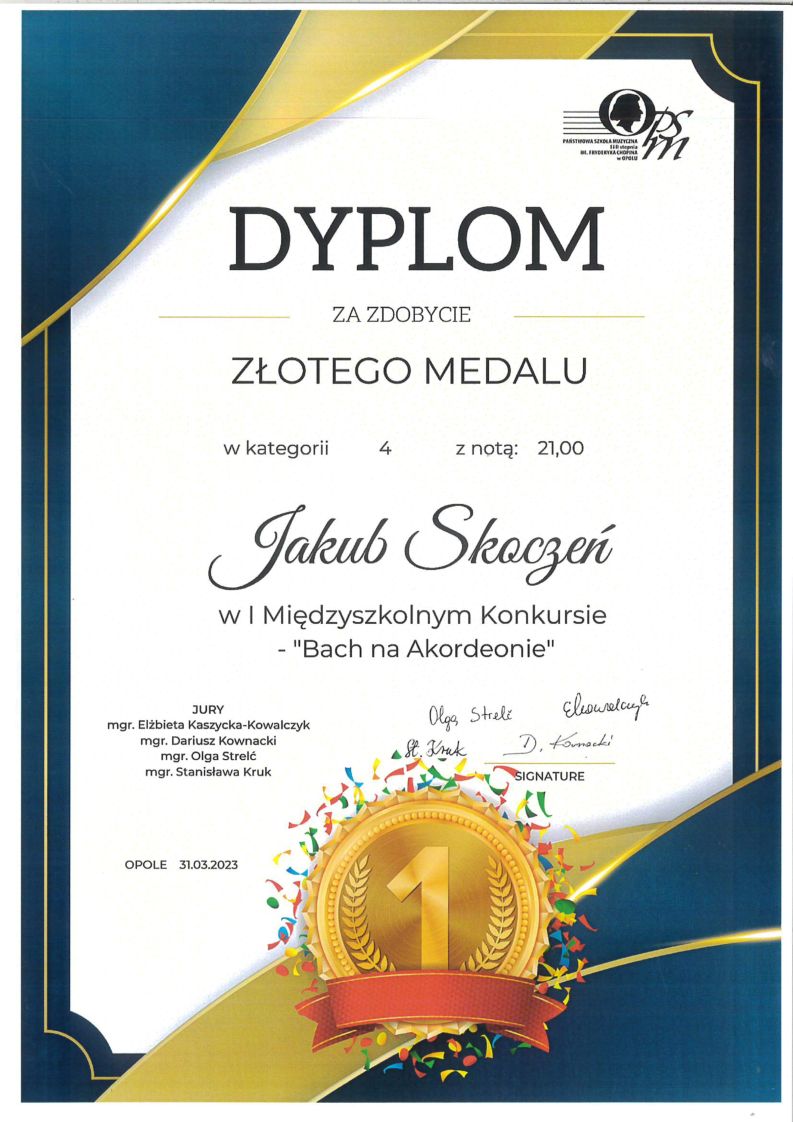 31 marca 2023 - I Międzyszkolny Konkurs Akordeonowy "Bach na akordeonie" w Opolu - osiągnięcia uczniów PSM I i II stopnia w Nysie