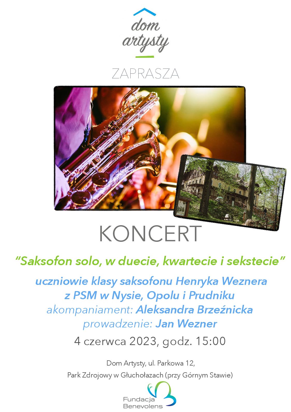 4 czerwca 2023 - Koncert uczniów PSM w Nysie, w Opolu i Prudniku z klas saksofonu Henryka Weznera - Dom Artysty w Głuchołazach.