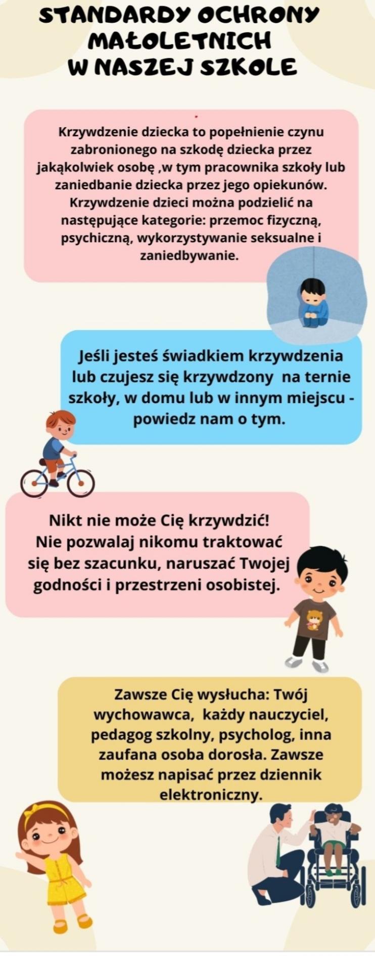 - JEŚLI sam/a doznajesz krzywdy lub jesteś świadkiem krzywdzenia innego ucznia to NATYCHMIAST powiedz o tym komuś dorosłemu: