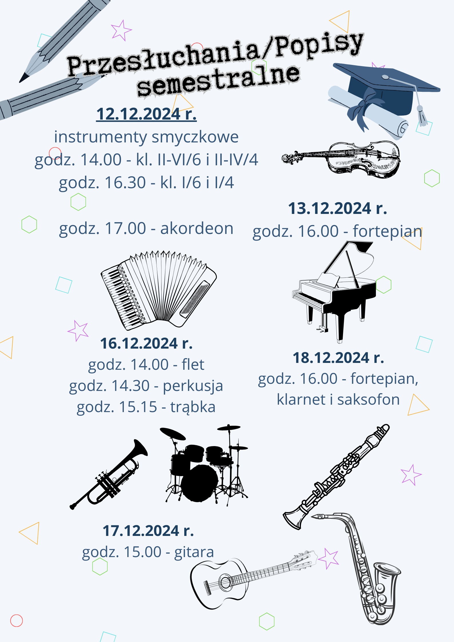 Poniżej znajduje się harmonogram popisów/przesłuchań semestralnych.