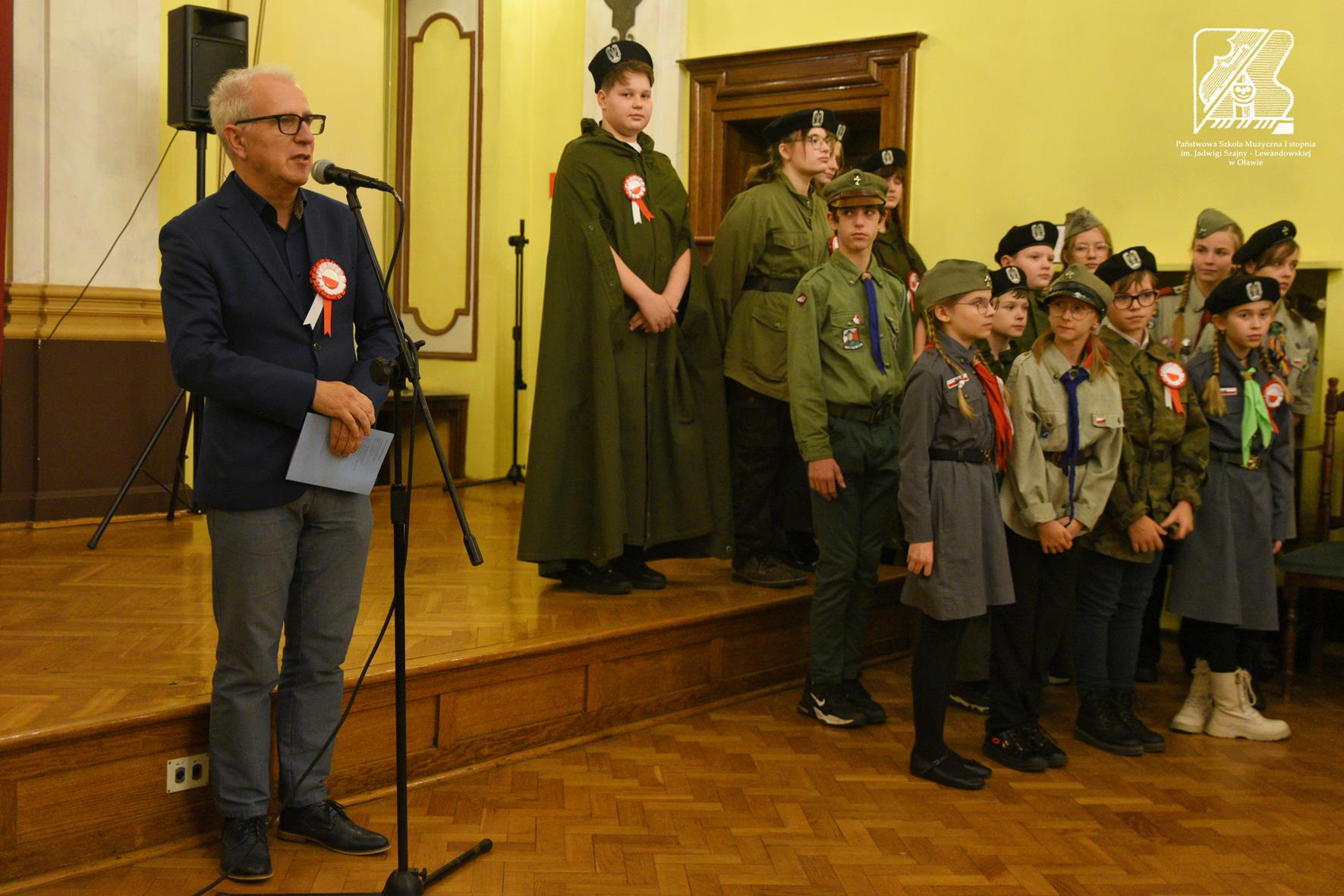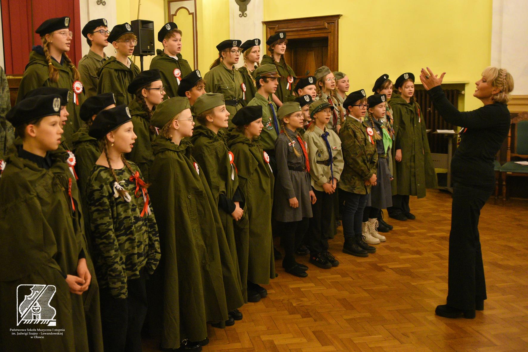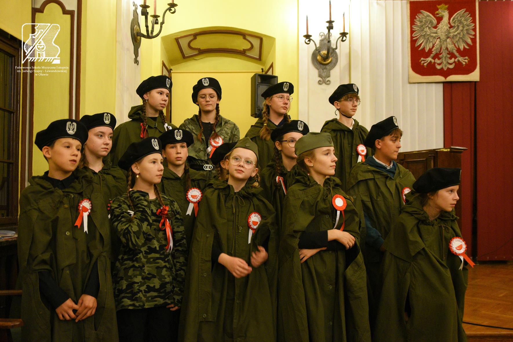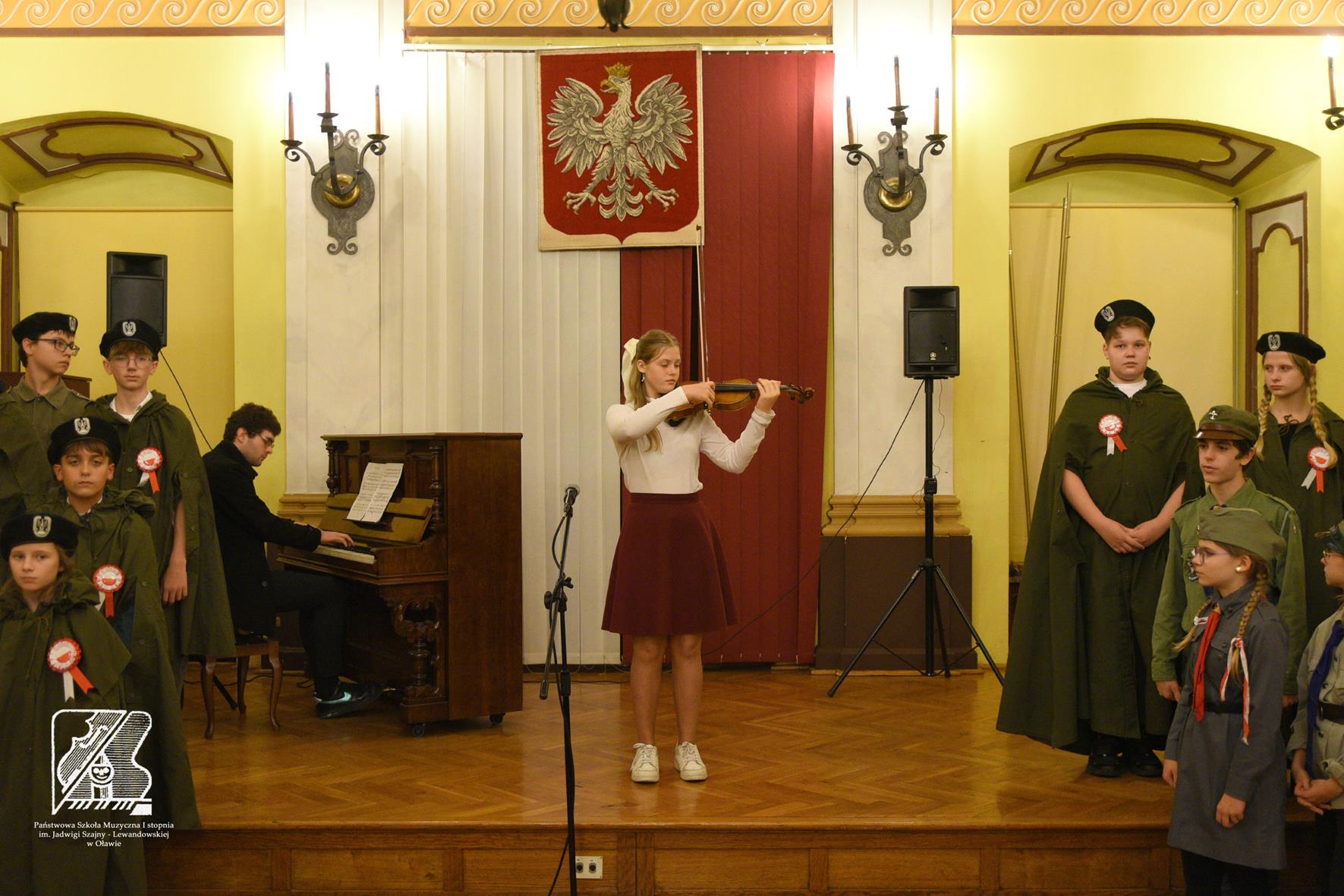 Uroczysty koncert przeplatany poezją upamiętnił kolejną rocznicę odzyskania niepodległości. W pięknej Sali Rycerskiej Urzędu Miasta w Oławie mieliśmy okazję wysłuchać uczniów naszej szkoły w repertuarze patriotycznym. Wystąpił Chór szkolny pod kierunkiem p. Ewy Ciśniewicz (akompaniament p. Joanna Kassie-Kościukiewicz), soliści: Amelia Cwynar, Robert Giblak, Hanna Zinkiewicz, Karol Patriak oraz duet Ada Grabowska-Ewa Ziobrowska (akompaniament p. Michał Kościukiewicz oraz p. Jakub Madyniak) oraz recytatorzy: Anna Bilewicz, Hanna Marciniuk, Maja Bułdys. Dziękujemy za liczne przybycie, wspólne śpiewanie i nagradzanie gromkimi brawami młodych artystów.