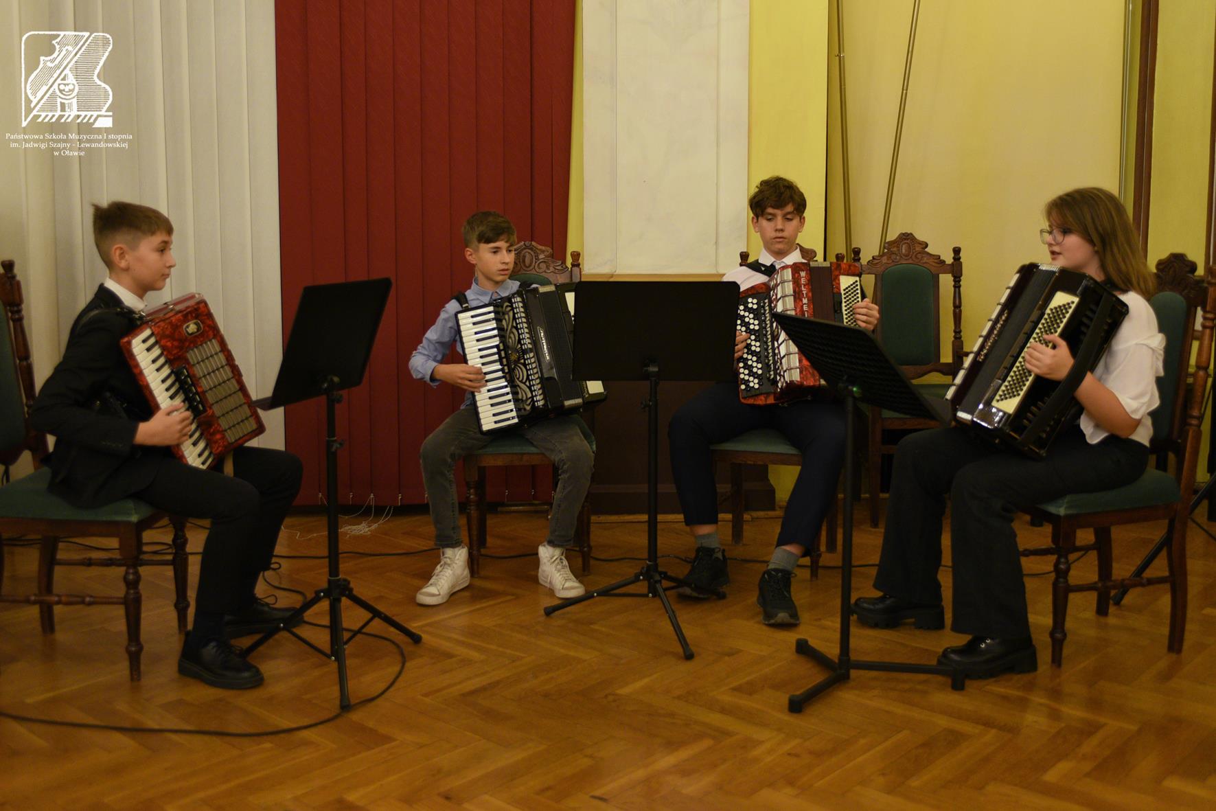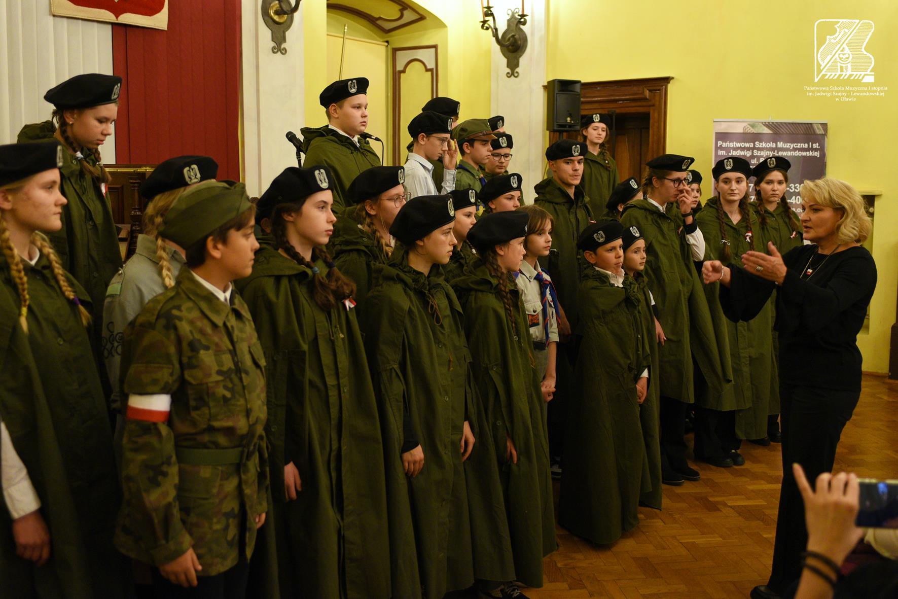 9 listopada w Sali Rycerskiej Urzędu Miasta odbył się uroczysty koncert z okazji Narodowego Święta Niepodległości. Wystąpili uczniowie oraz nauczyciele PSM I st. w Oławie. Dyrektor szkoły pan Jacek Gąsior przywitał zgromadzonych. Publiczność gromkimi brawami nagradzała solistów (Zuzanna Maszyńska, Amelia Cwynar, Wiktor Jakubas, Cezary Orzechowski) zespoły kameralne (kwartet akordeonowy, duet – Karolina Dembowska/Antoni Dembowski, duet – Davin Dydyński/Lena Sawicka, duet Ada Grabowska/Ewa Ziobrowska) oraz chór szkolny pod kierunkiem pani Ewy Ciśniewicz. Wojskowe stroje chórzystów podkreśliły wykonywany repertuar. W solowym występie nauczyciel pan Jakub Madyniak brawurowo wykonał Poloneza As - dur op.53 Fryderyka Chopina otrzymując gorące i długie oklaski. Słowo wstępne oraz wiersze odczytały uczennice Samorządu Uczniowskiego Zuzanna Haponik oraz Laura Brudnik. Podziękowania wszystkim wykonującym, przygotowującym uczniów nauczycielom złożyła pani Joanna Kassie – Kościukiewicz - koordynator i pomysłodawca przedsięwzięcia.