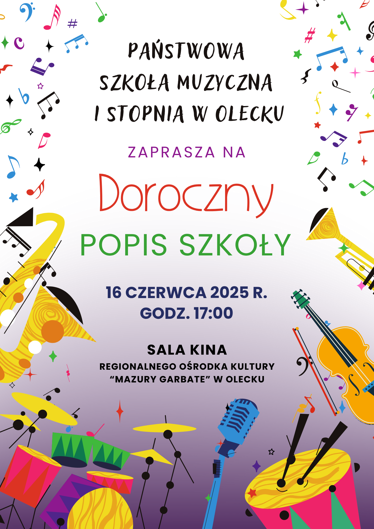 Zapraszamy na DOROCZNY POPIS Państwowej Szkoły Muzycznej I st. im. Ignacego Jana Paderewskiego w Olecku dnia 16 czerwca 2025 r. w ROK Mazury Garbate.