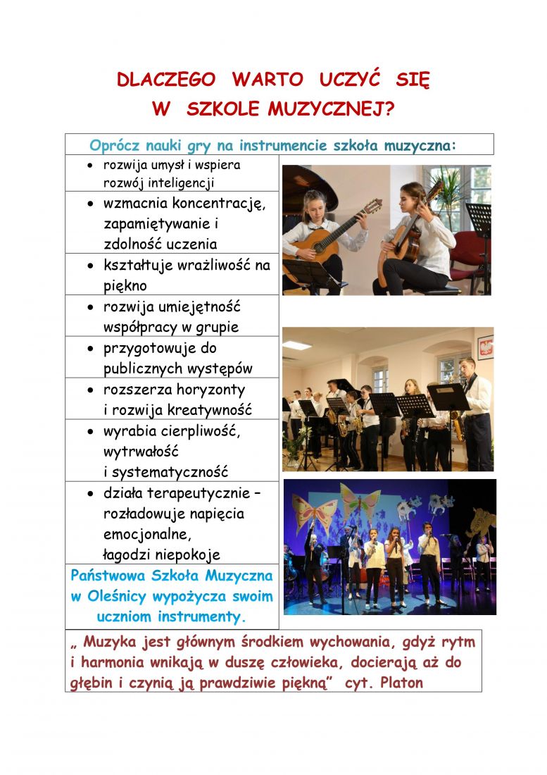 o oraz inne, które mogą utrudniać naukę gry jak np.: wada zgryzu (instrumenty dęte) czy obgryzanie paznokci (gitara).