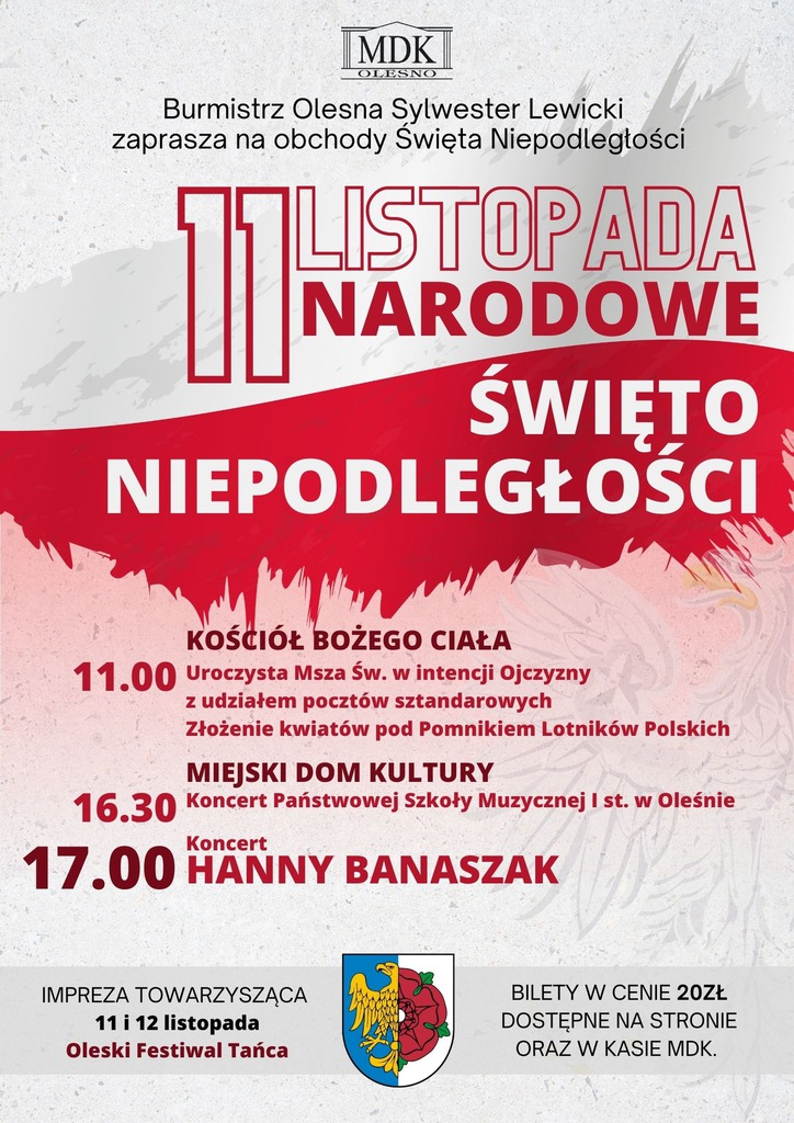 Z okazji Święta Niepodległości w piątek (11.11.) na deskach MDK gościć będziemy wspaniałą Hanna Banaszak z zespołem!