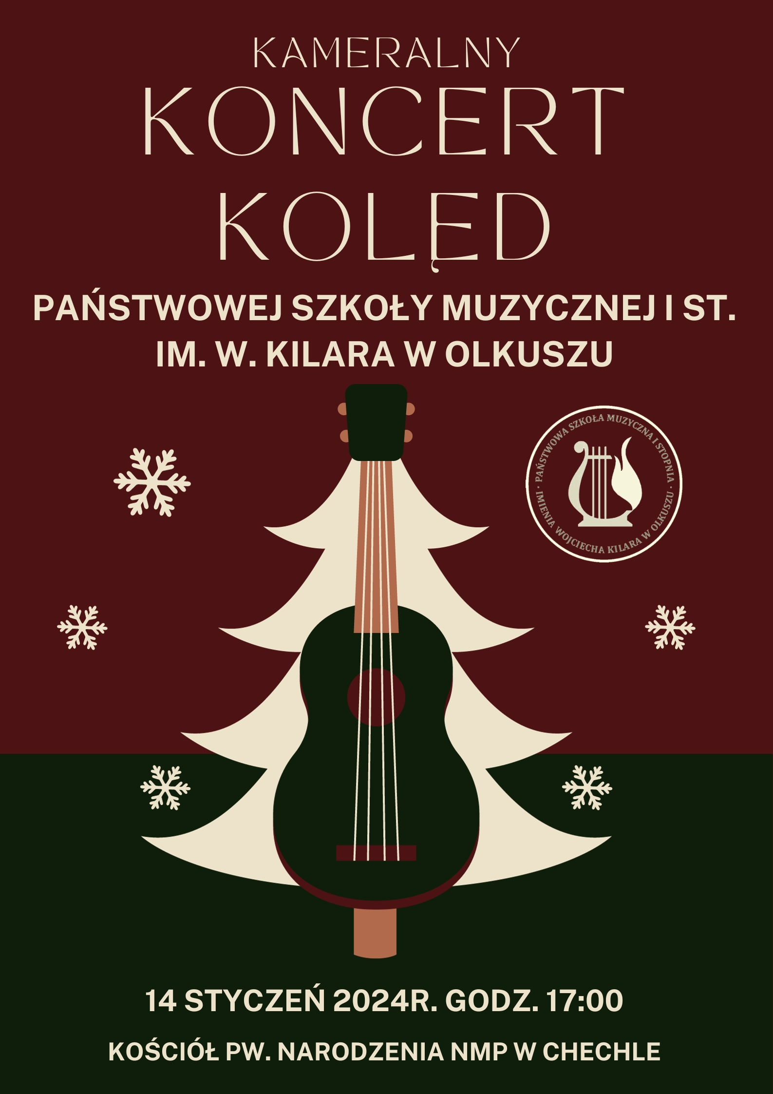 Serdecznie zapraszamy na kameralny koncert kolęd, który odbędzie się w kościele pw. Narodzenia NMP w Chechle 14 stycznia 2024 r. o godz.17.00