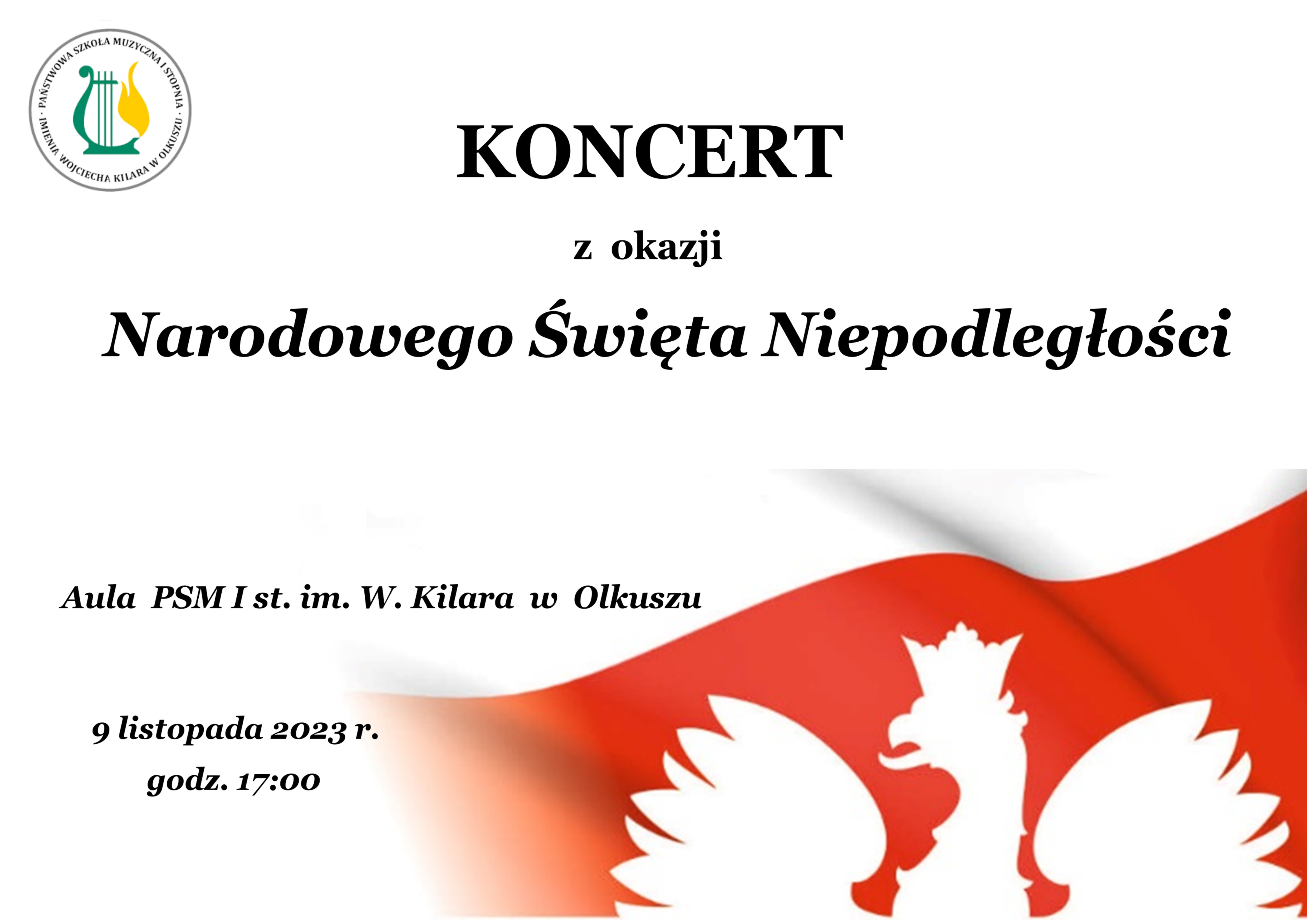 Serdecznie zapraszamy do naszej szkoły 9.11.2023 na godz. 17.00 na koncert z okazji Narodowego Święta Niepodległości