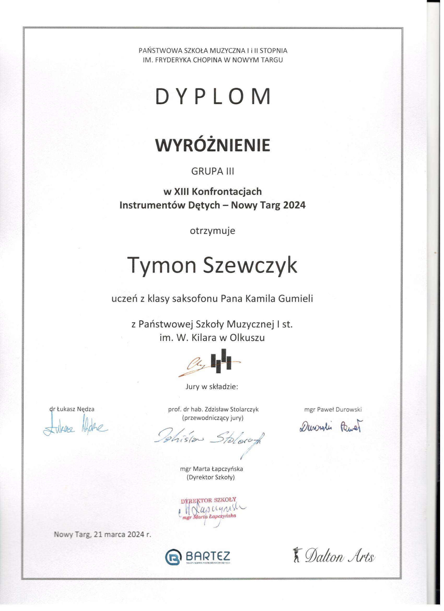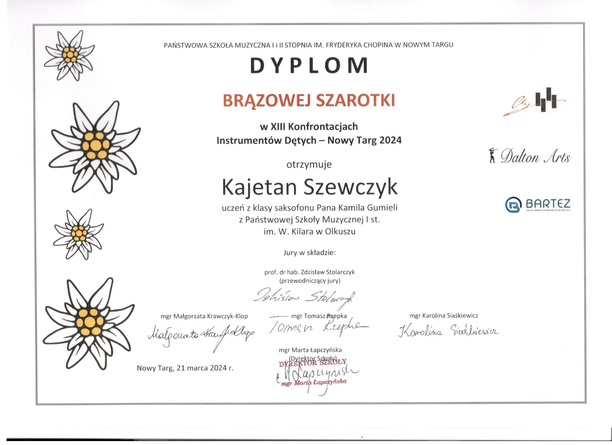 Gratulujemy Kajetanowi Szewczykowi za zdobycie Brązowej Szarotki oraz wyróznienia Tymonowi Szewczykowi z klasy mgr Kamila Gumieli w XIII Konfrontacjach Instrumentów Dętych w Nowym Targu. Gratulujemy!!!!