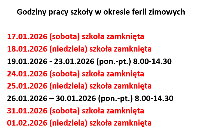 Godziny pracy szkoły w okresie ferii zimowych 2026