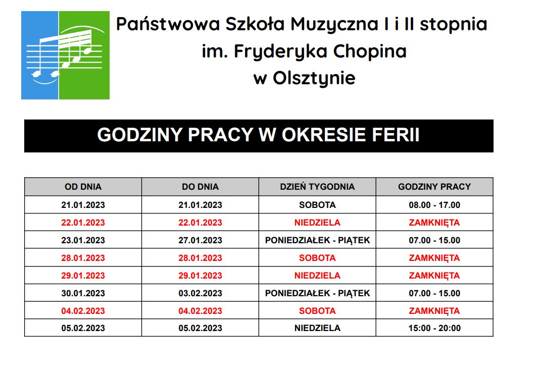 Godziny pracy szkoły w okresie ferii 16.01.2023 Materiały Do pobrania - Godziny pracy szkoły w okresie ferii Do pobrania - Godziny pracy szkoły w okresie ferii.pdf 0.17MB Zdjęcia (1) Pokaż zdjęcie 1 z galerii.
