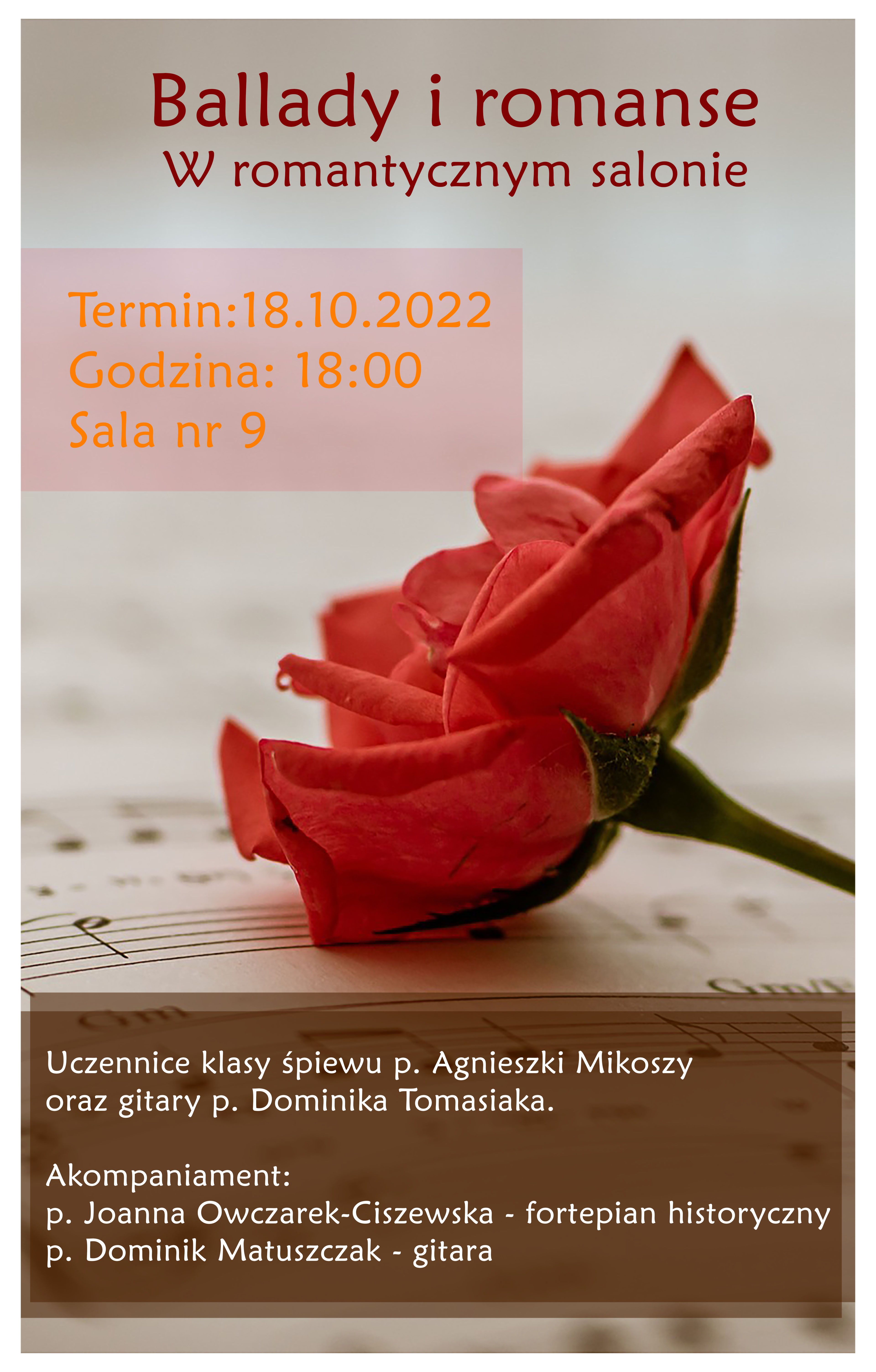 Koncert w wykonaniu uczennic klasy śpiewu p. Agnieszki Mikoszy oraz klasy gitary p. Dominika Tomasiaka.