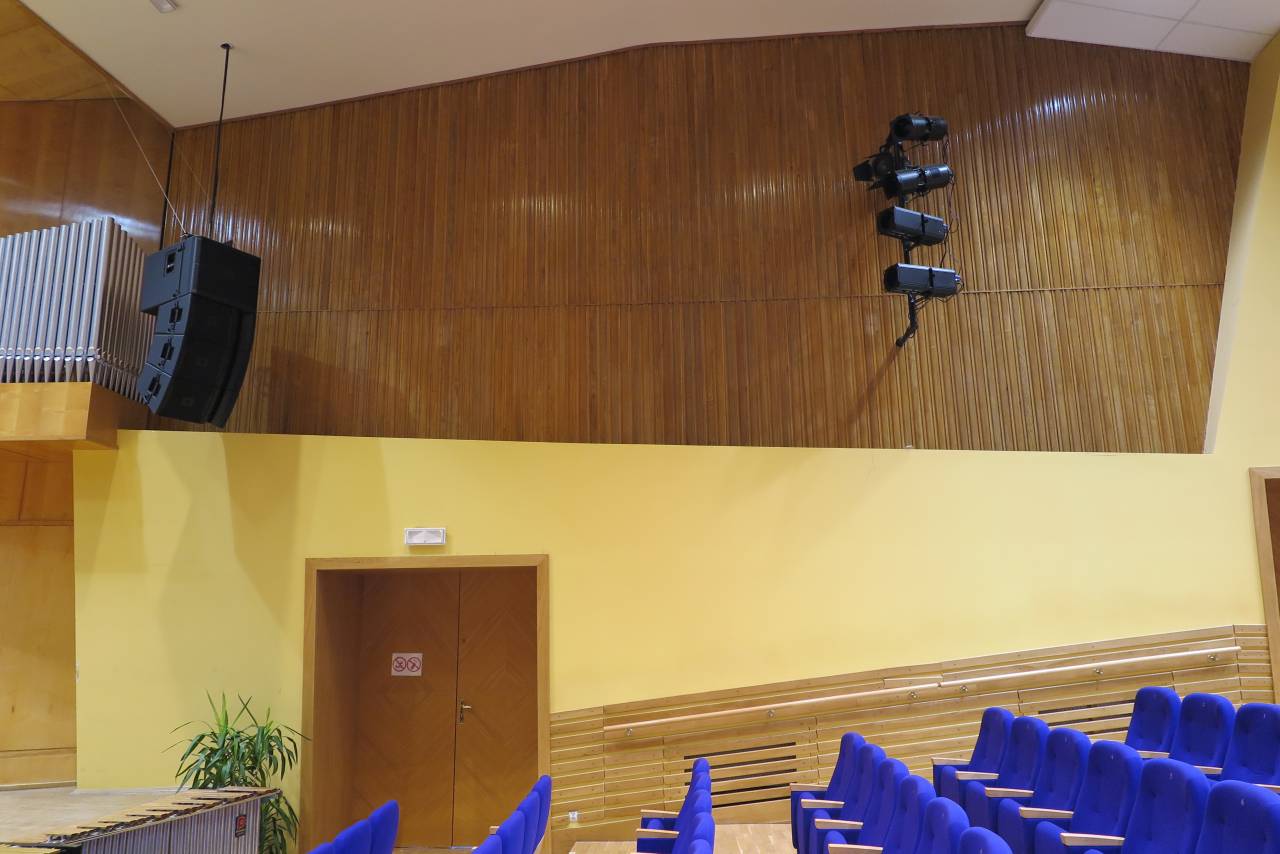 - Zakupiono i zamontowano sprzęt nagłośnieniowy i oświetleniowy w sali koncertowej.