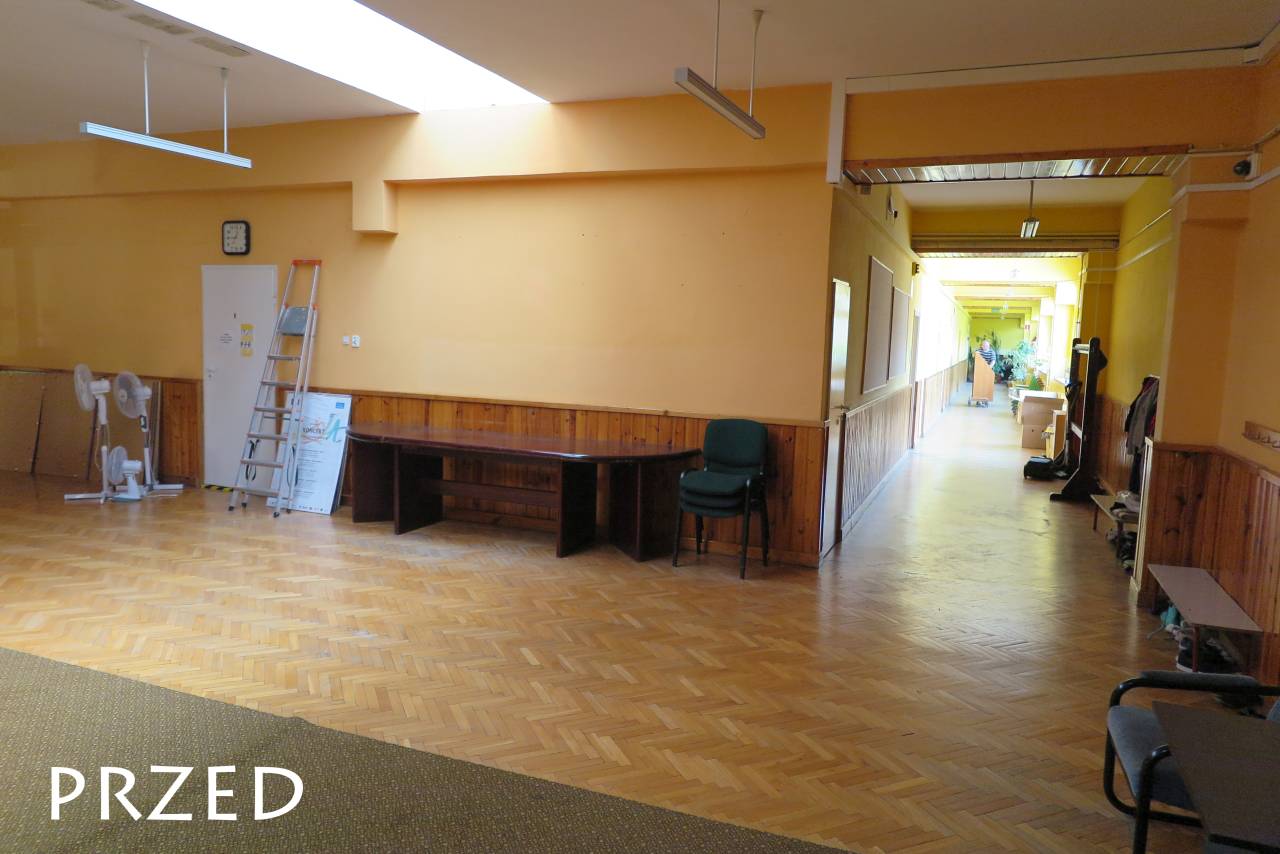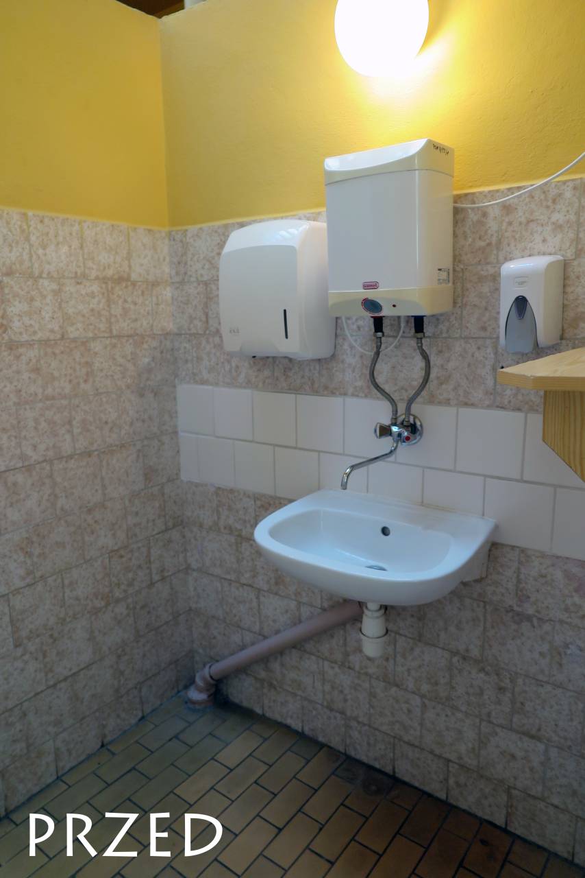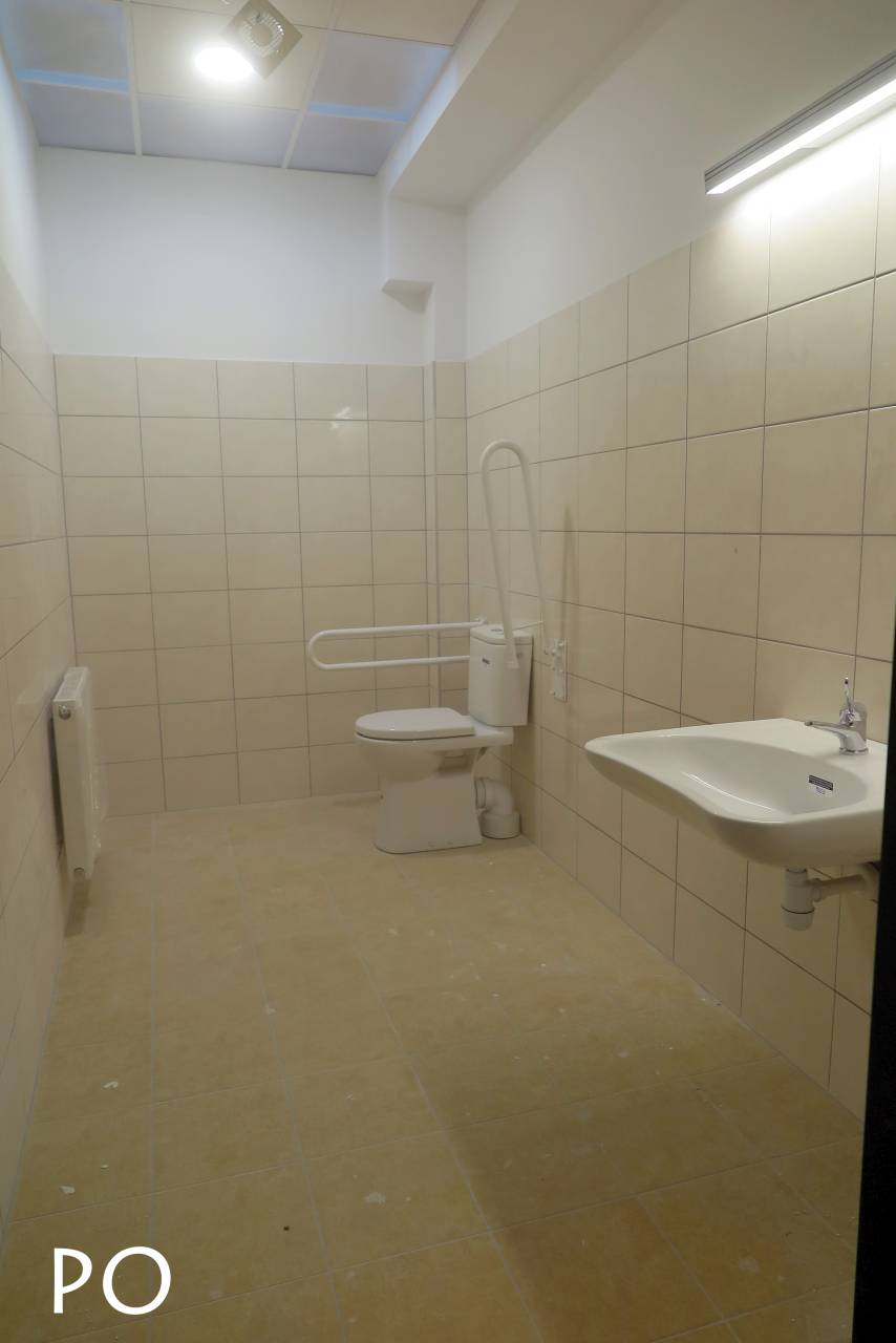 - Przebudowę pomieszczeń higieniczno-sanitarnych i gospodarczych w drugim budynku Szkoły w tym: wymieniono instalację wodno-kanalizacyjną i urządzenia sanitarne, kanalizację deszczową, wstawiono drzwi dymoszczelne w korytarzu, zaadaptowano pomieszczenie magazynowe na zaplecze socjalne, rozszerzono instalację elektryczną w celu podłączenia podgrzewaczy wody.