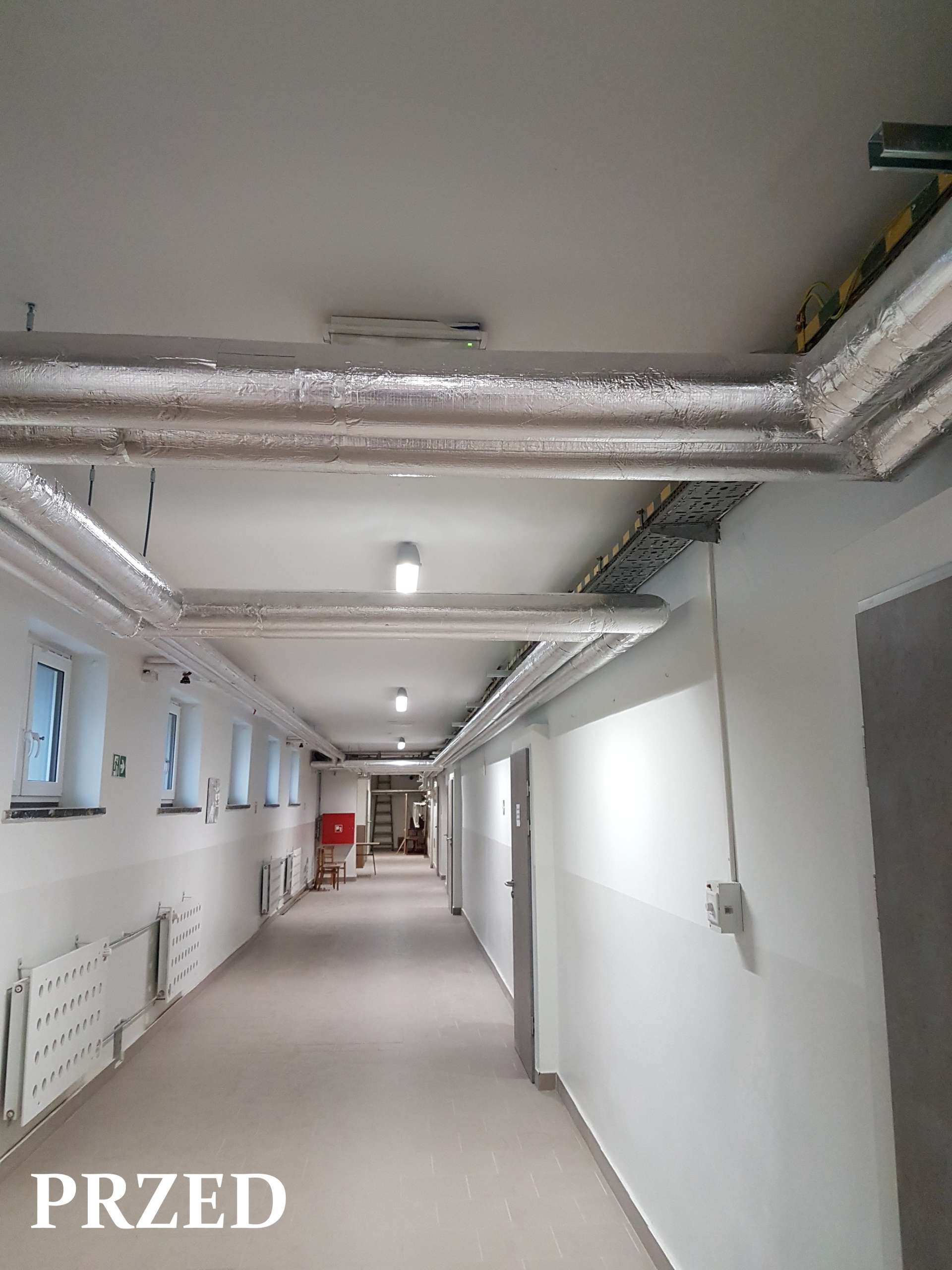 - Modernizację infrastruktury węzłów cieplnych, zmianę lokalizacji małego węzła cieplnego, wymianę instalacji grzewczej central wentylacyjnych, zmianę czynnika grzewczego.